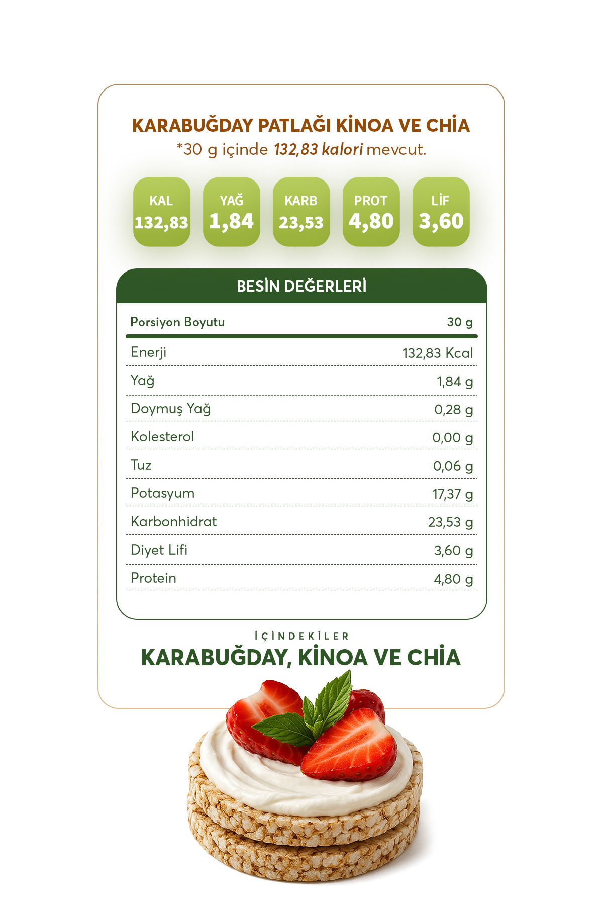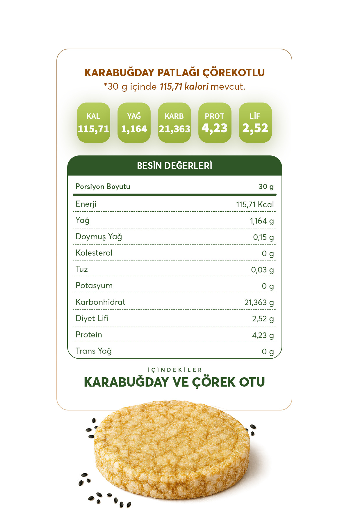-Bir adet karabuğday patlağı sadece 32 kaloridir.