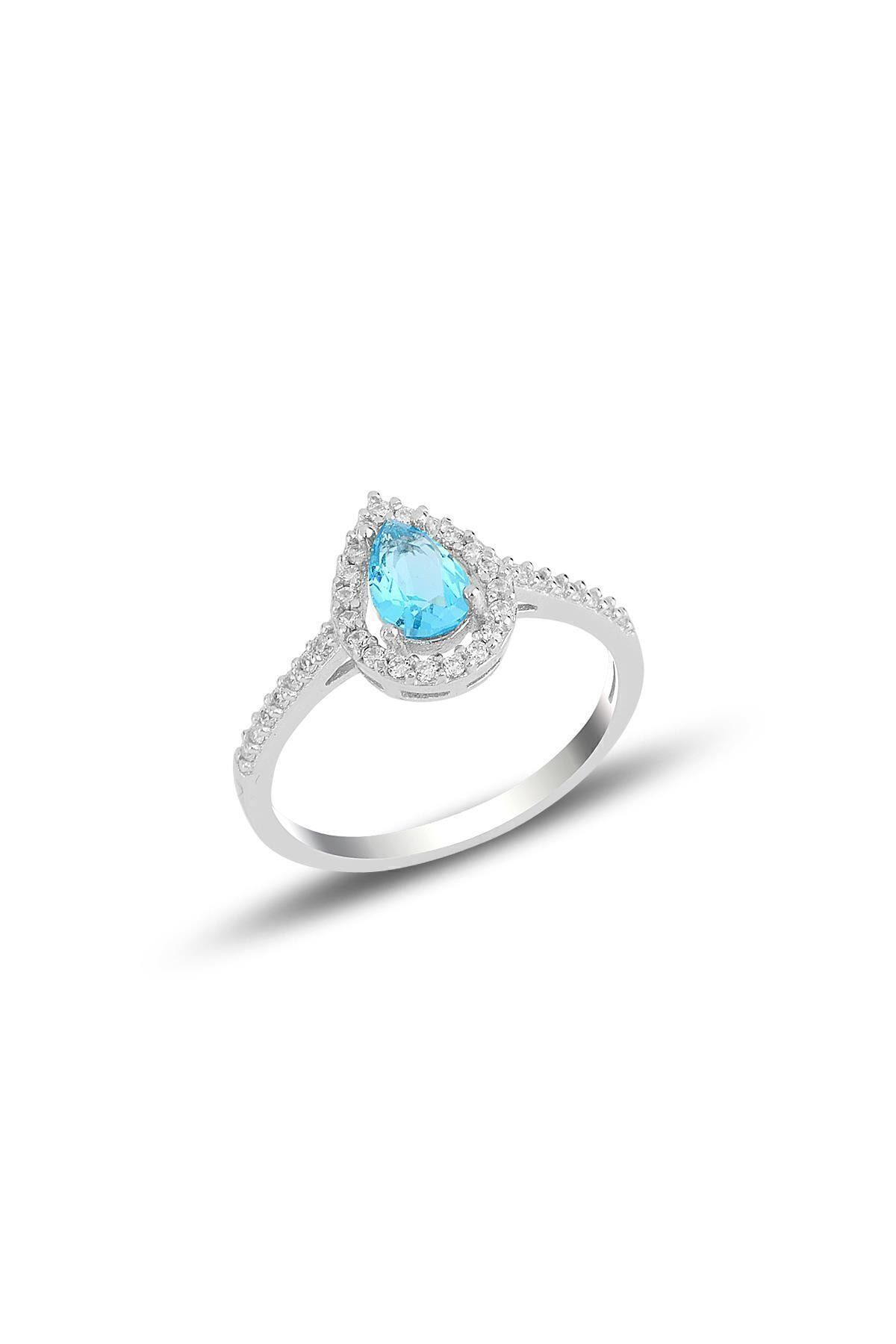 925 ayar gümüş rodyumlu kök zümrüt ve zirkon taşlı pırlanta modeli damla yüzük.