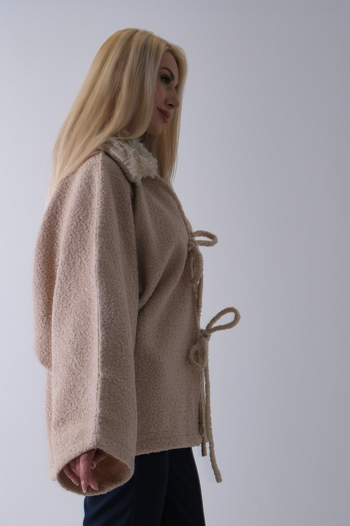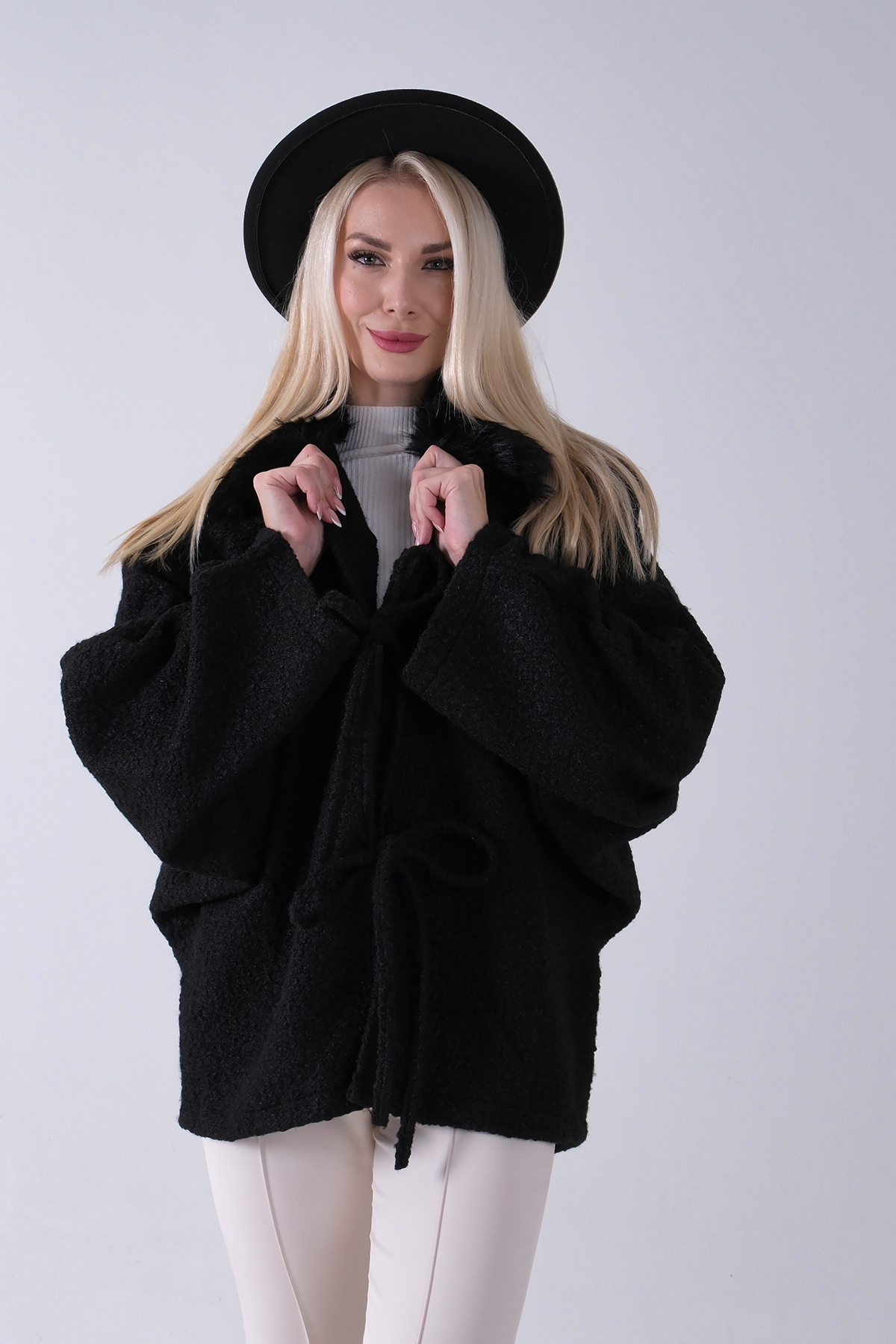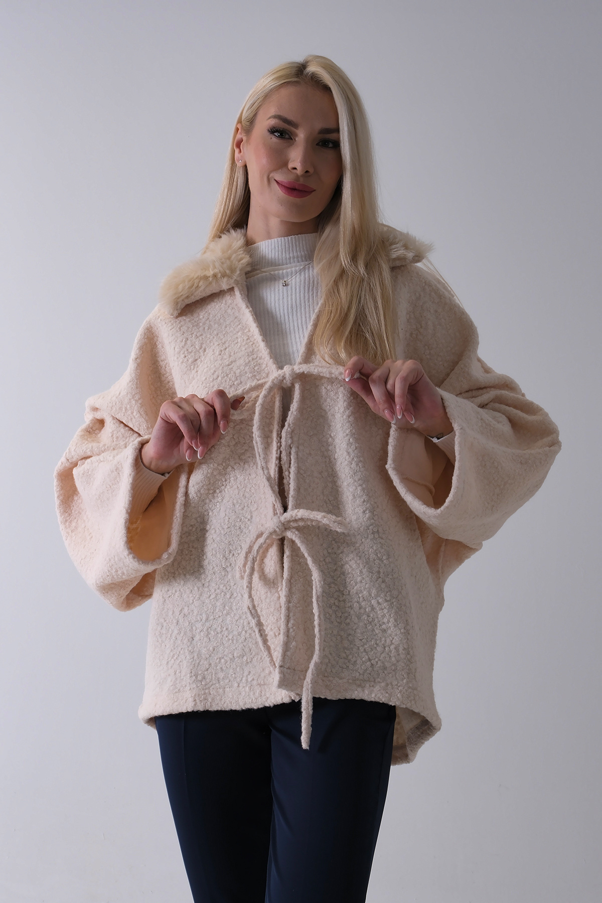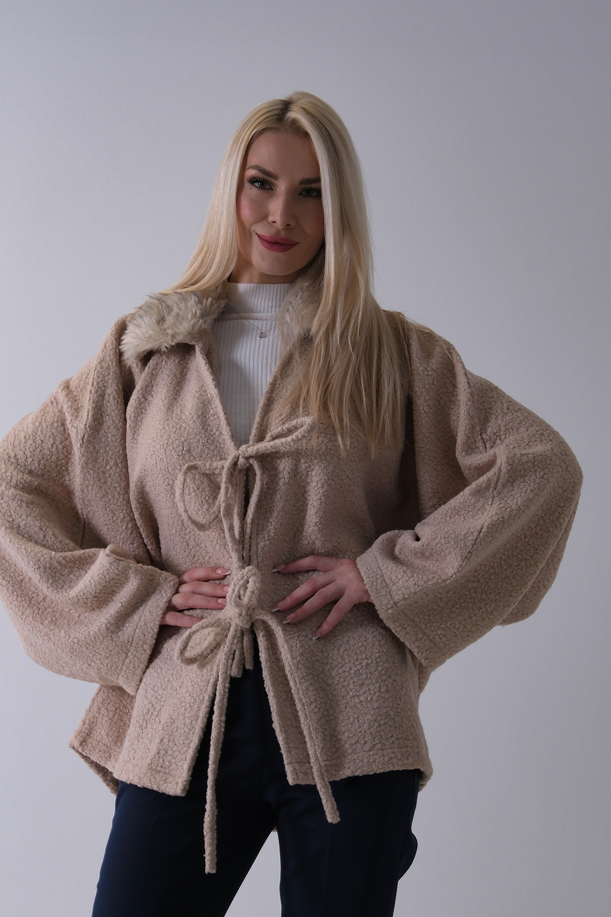 Önü Bağlama Detaylı Yakası Kürklü Panço Taş 47122475