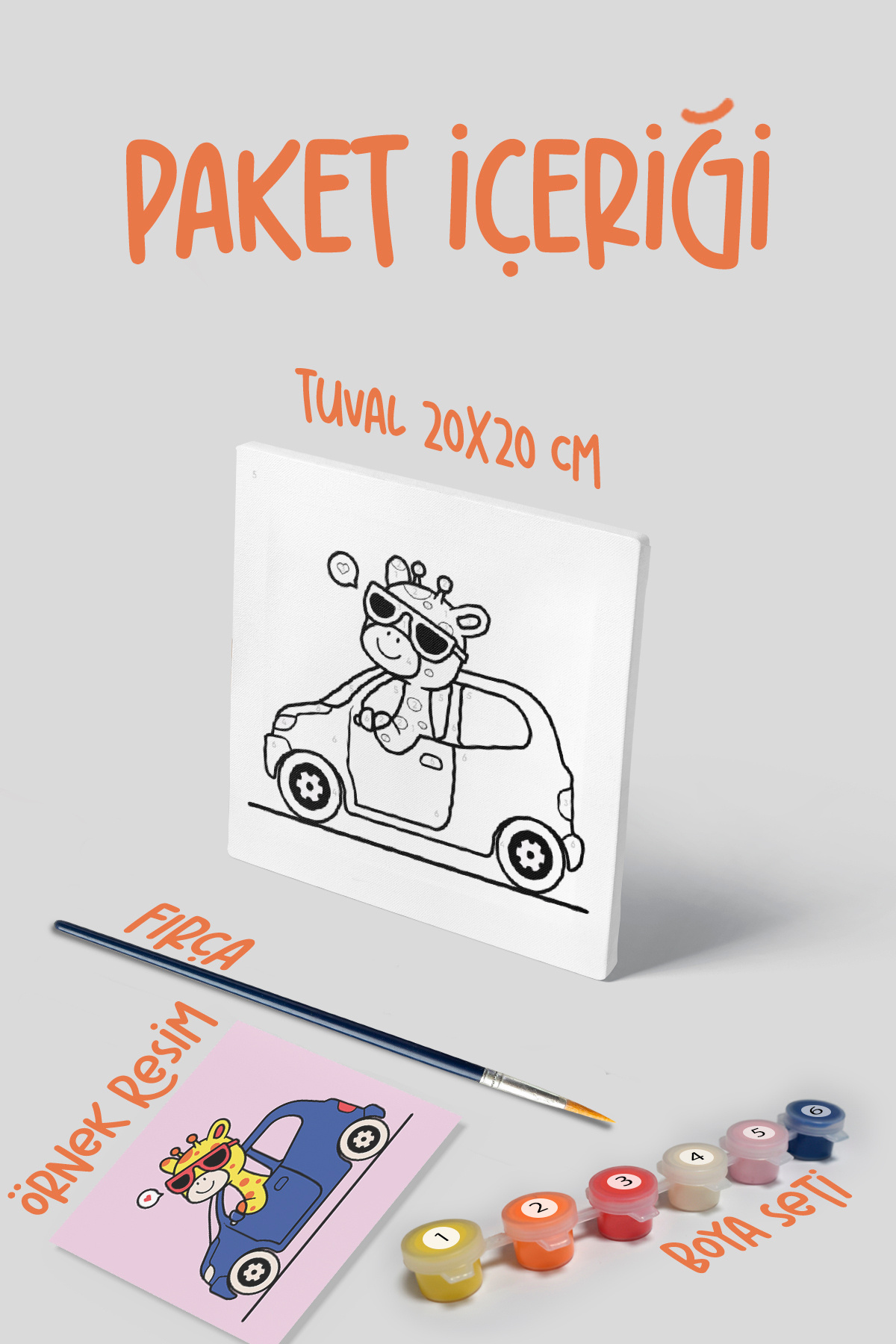 Zürafa Temalı Çocuk Tuval Boyama Seti | Tuval + 6 Renk Akrilik Boya + Fırça