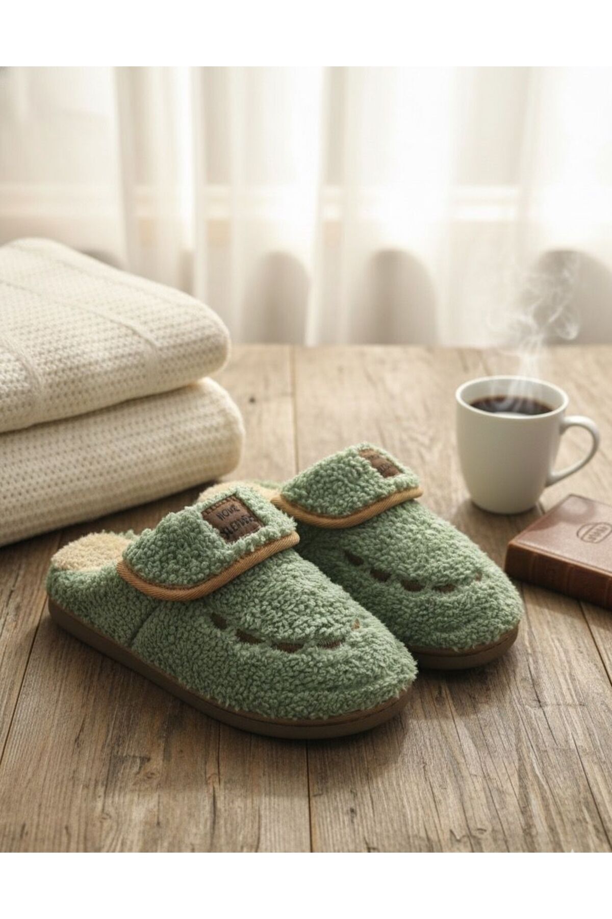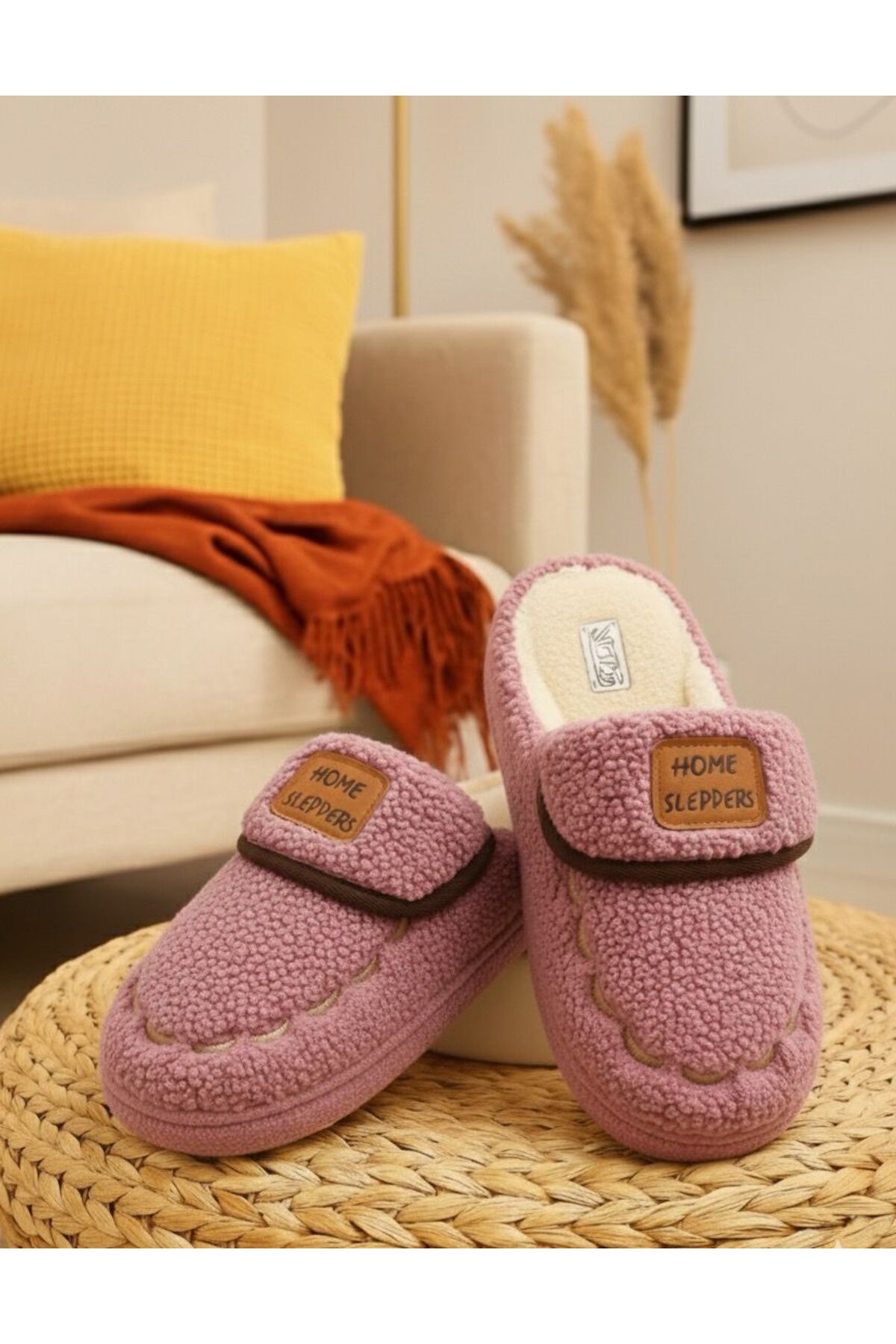 Kadın Desenli Peluş Kaymaz Hafif Tabanlı Tüylü Terlik Ev Terliği