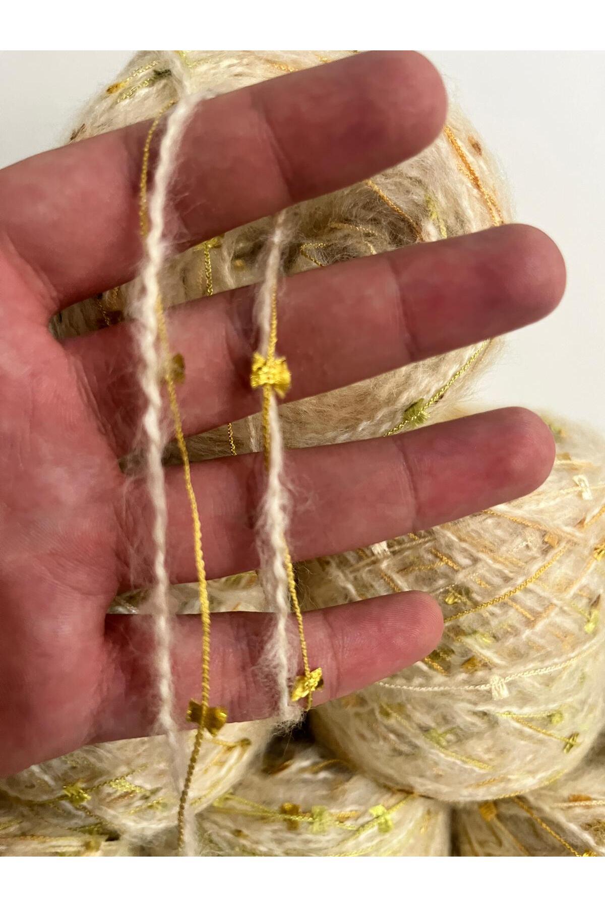 Moher örgü ipi (Krem) renk ipimiz çok renkli simli kelebek karışımıdır .