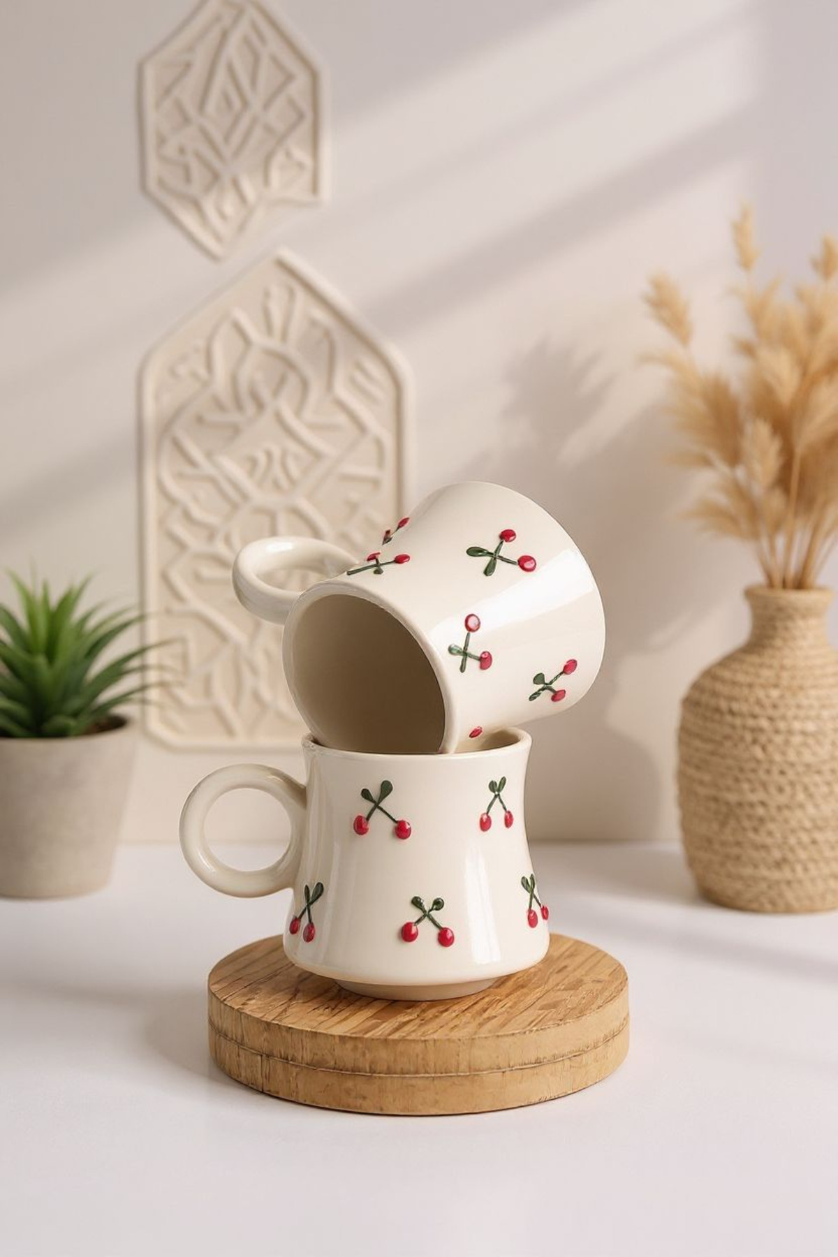 Ahşap tabaklı 95 ml 4 parça 2 kişilik kahve fincanı