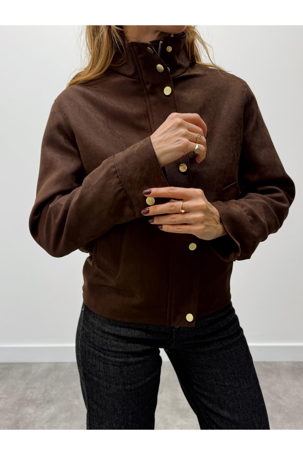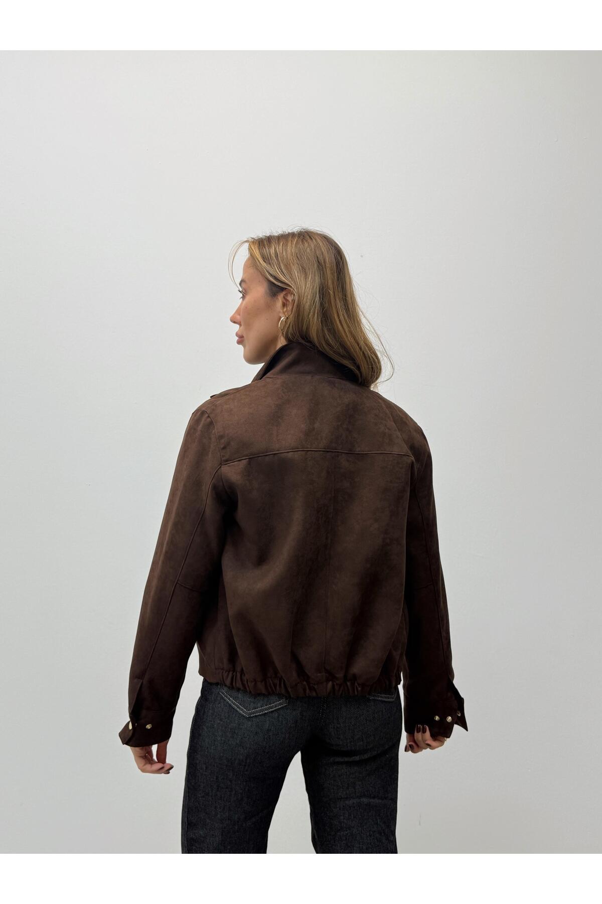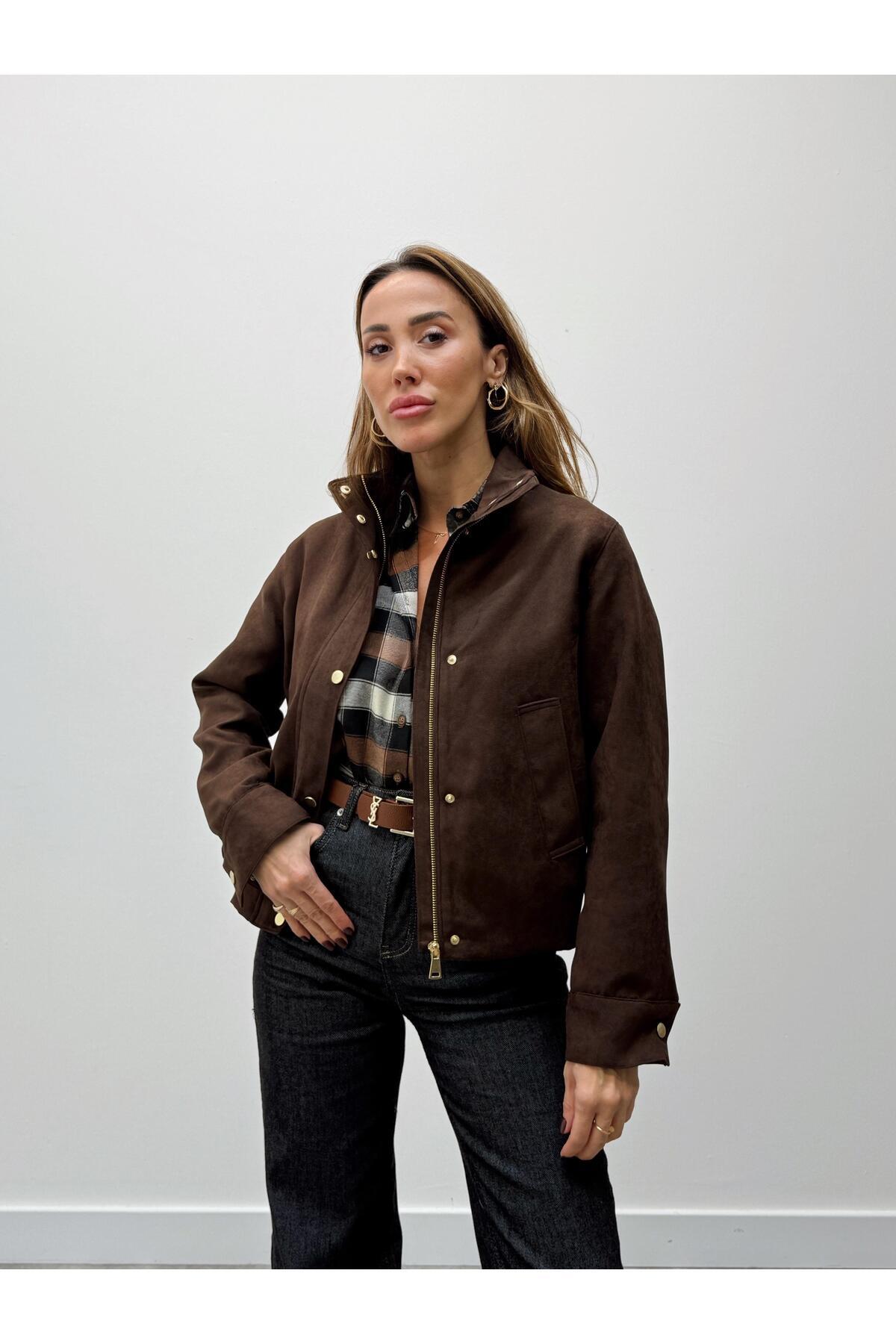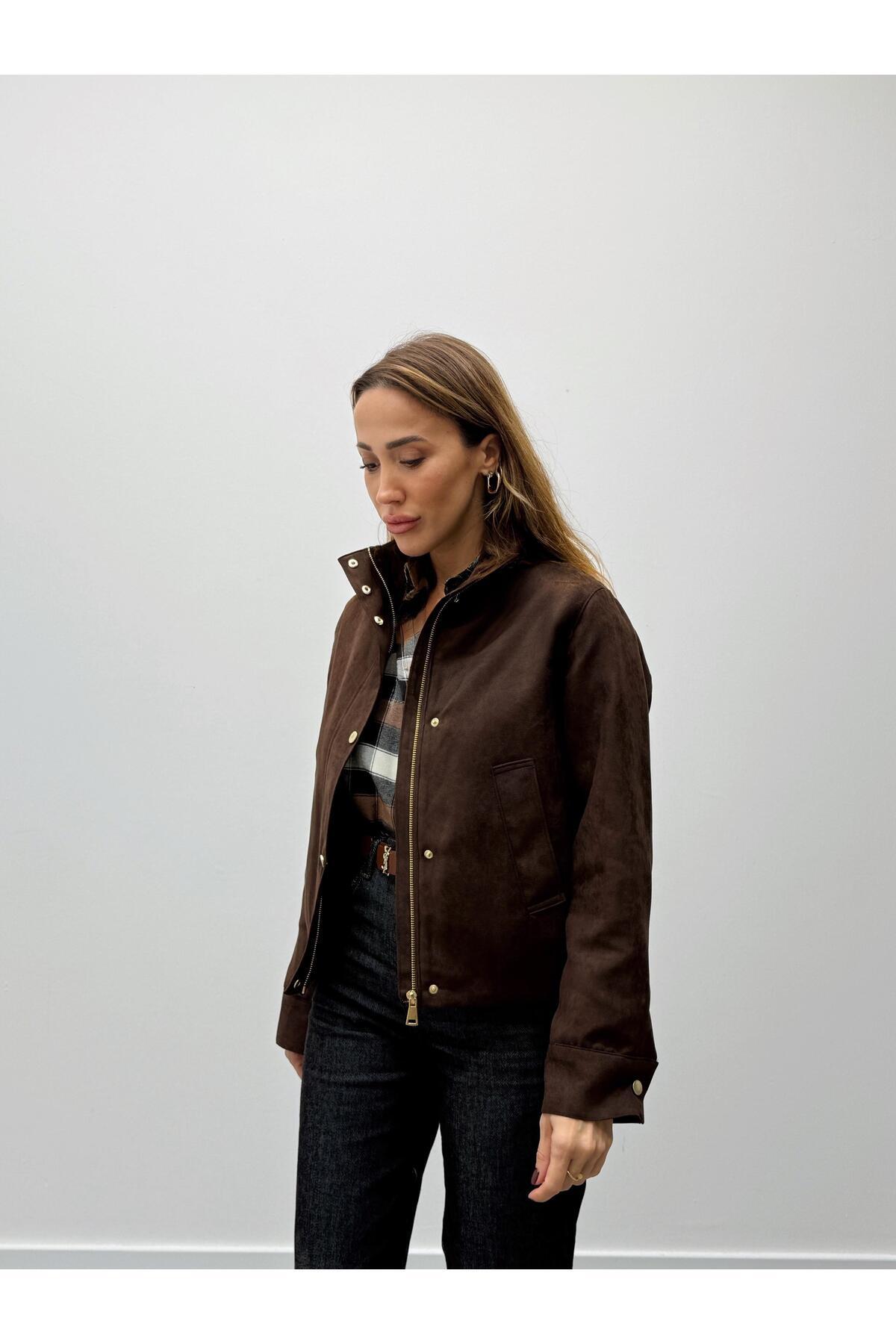 Kadın Süet Kumaş Arden Bomber Kahverengi Ceket
