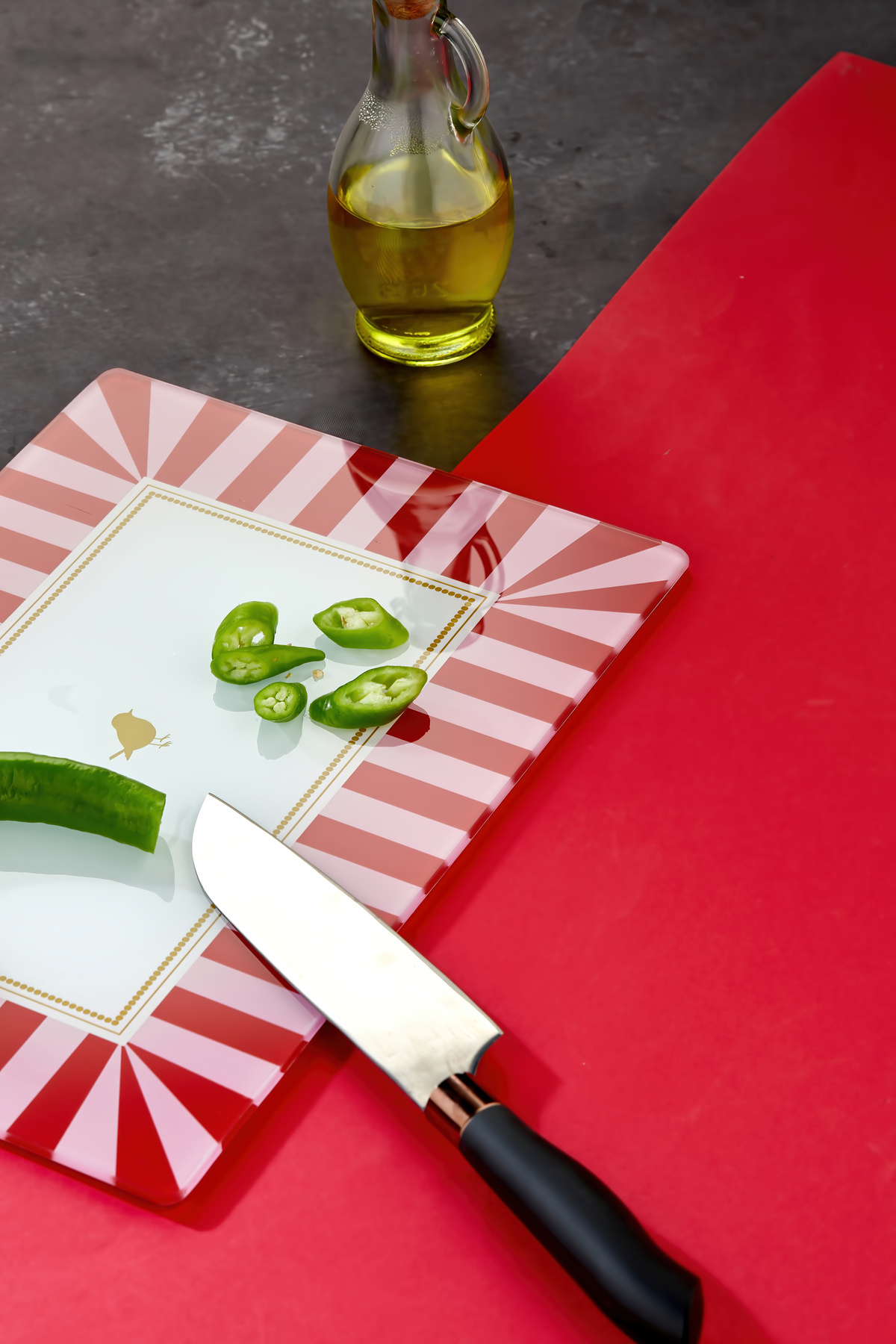 Temperli Kırılmaz Cam Kesim Panosu Silikon Kaymaz Ayaklı Love Birds Kuş Desenli