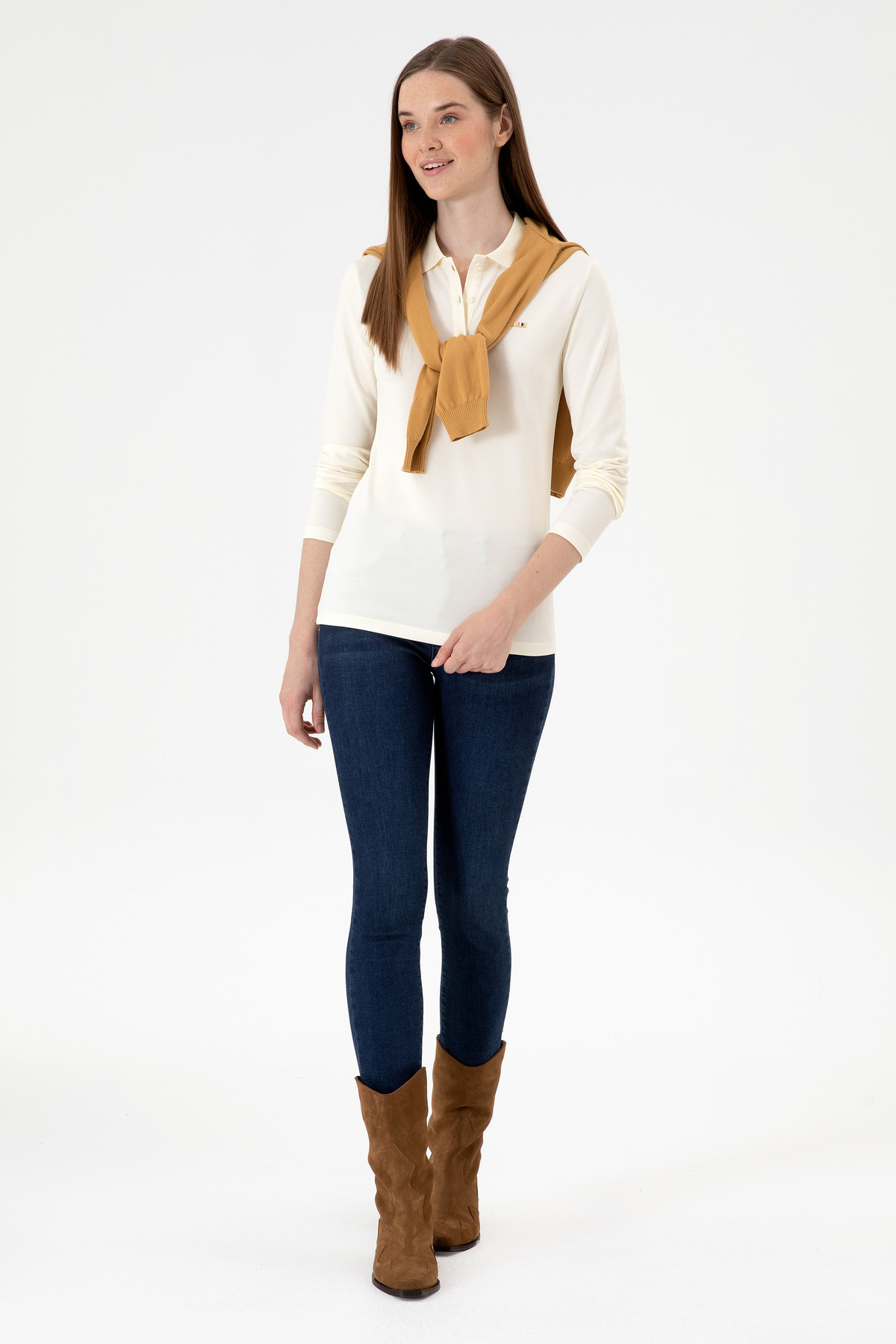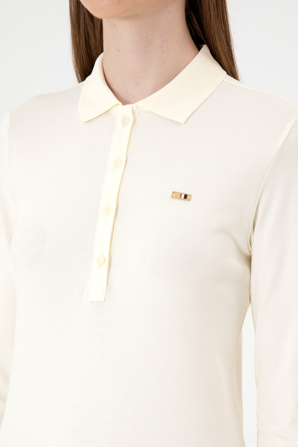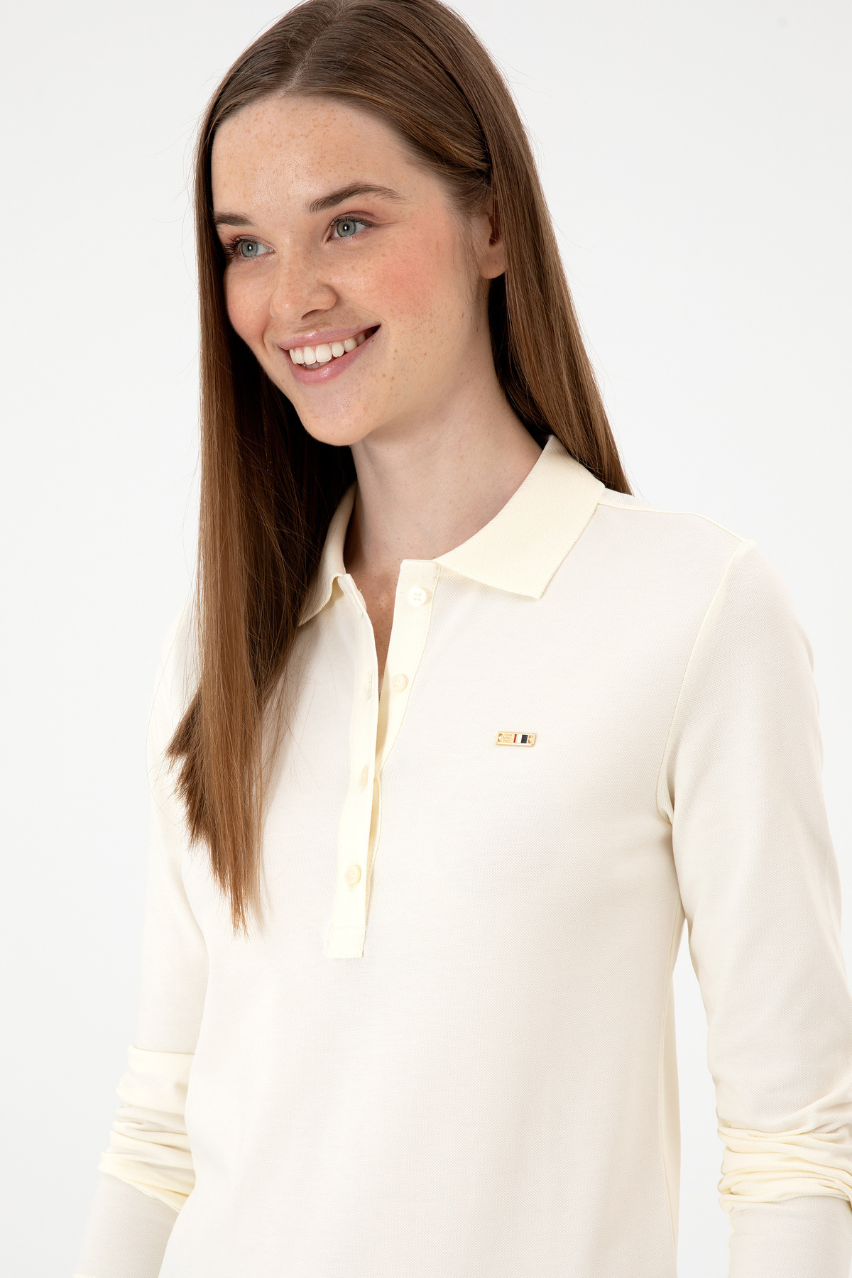 Kadın Krem Basic Polo Yaka Sweatshırt 50313593-VR256