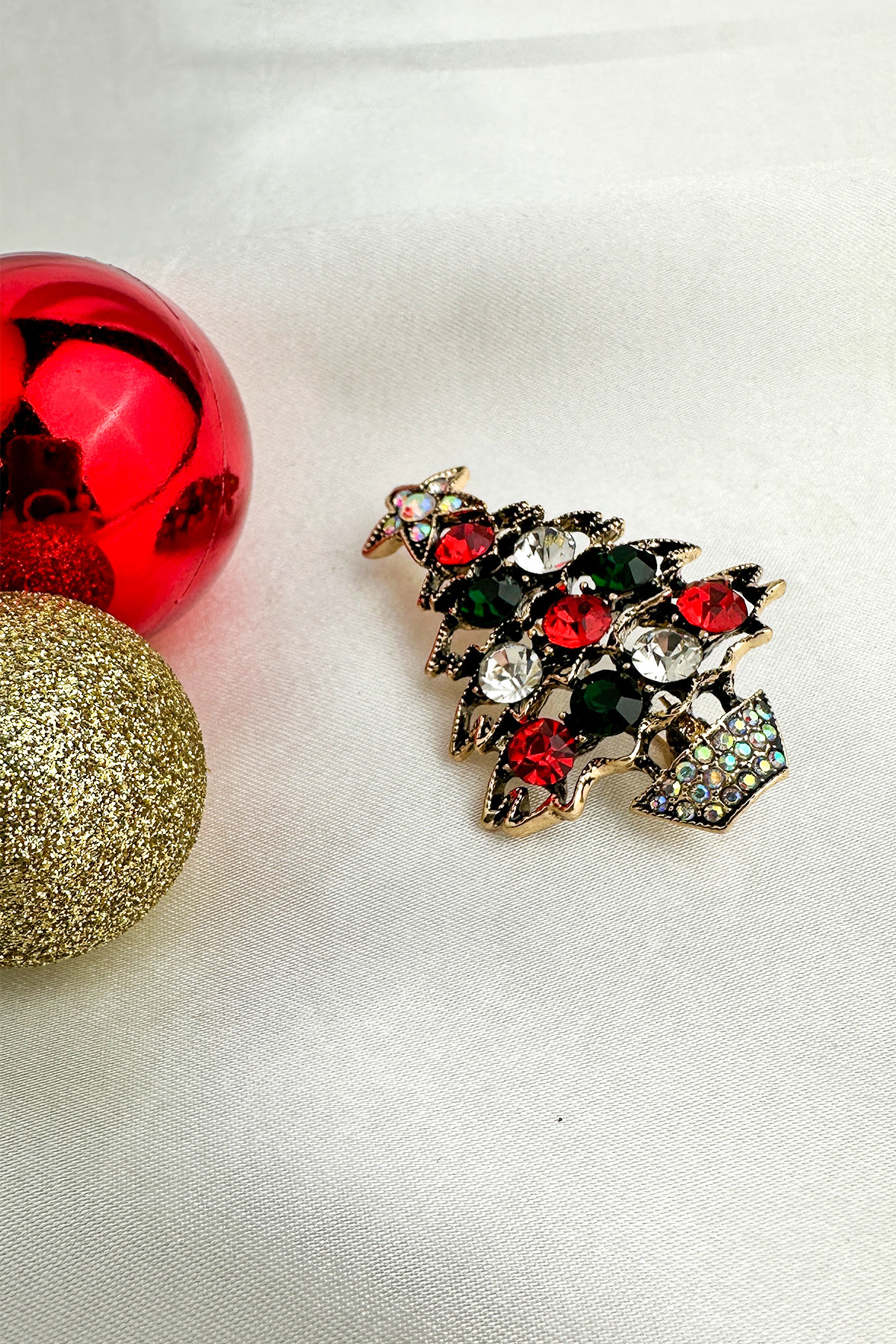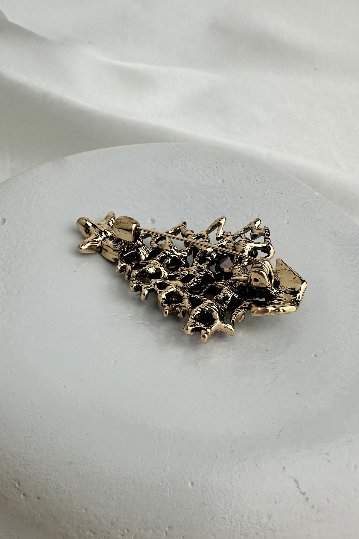 Yılbaşı Özel Eskitme Yıldız Detay Taşlı Çam Ağacı Broş (5cm)