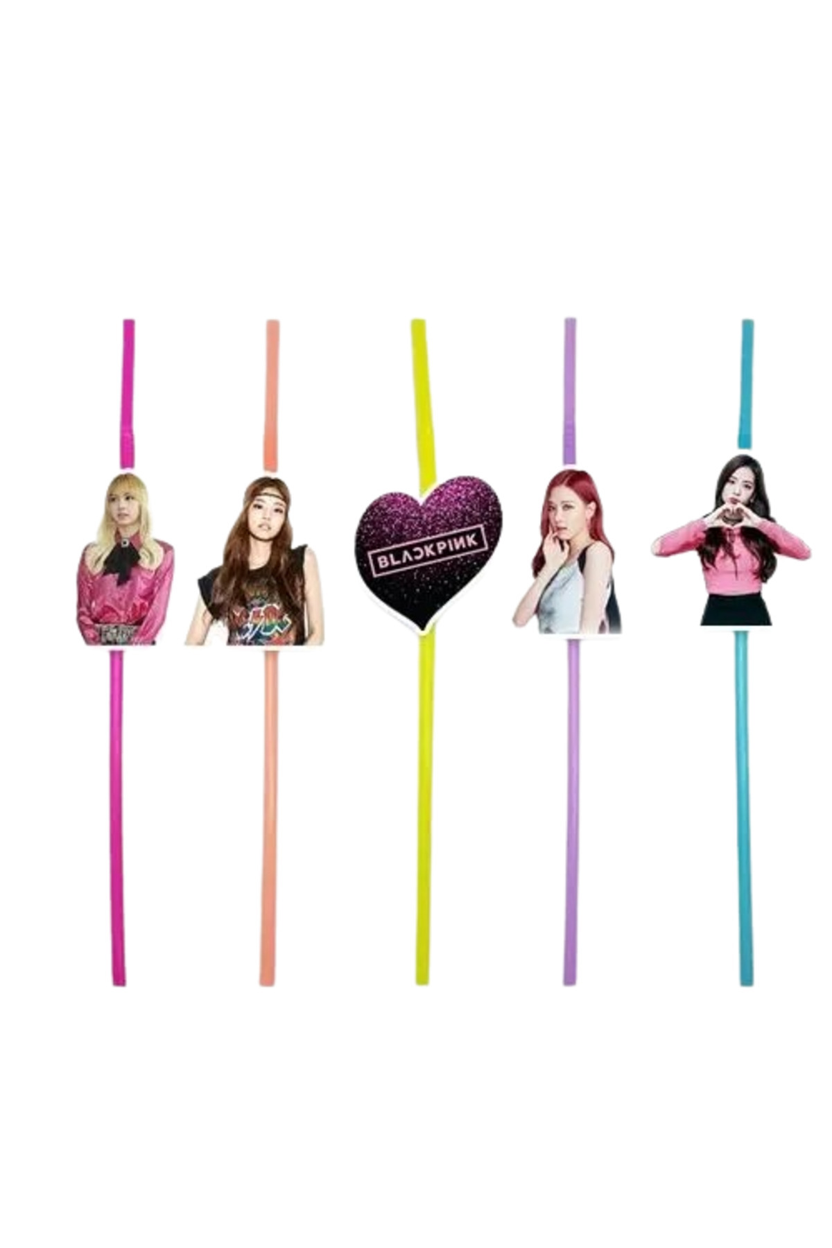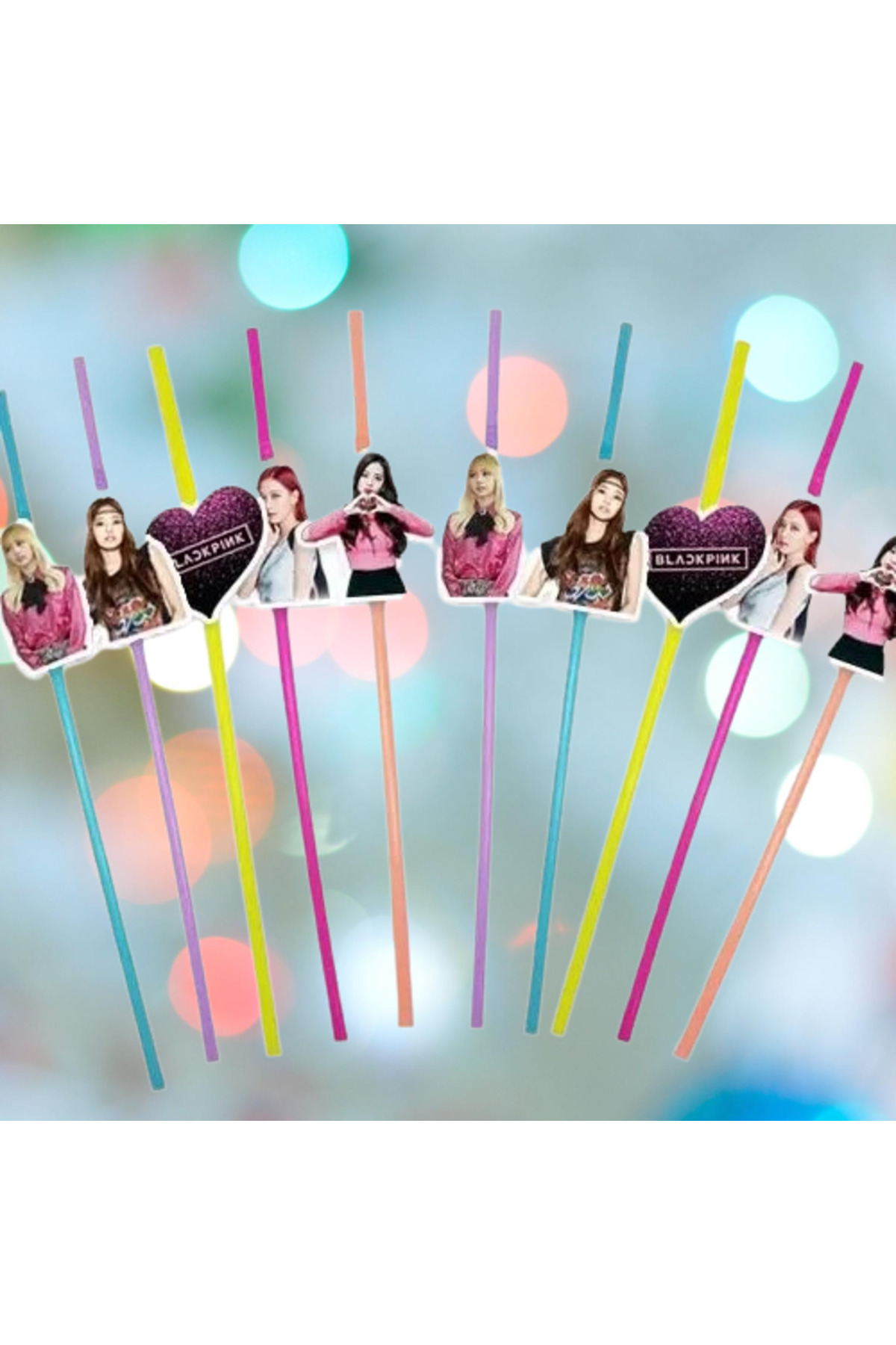 Pipet Black Pink Temalı Artistik Körüklü Pipet 10 lu Doğum Günü Temalı Pipet