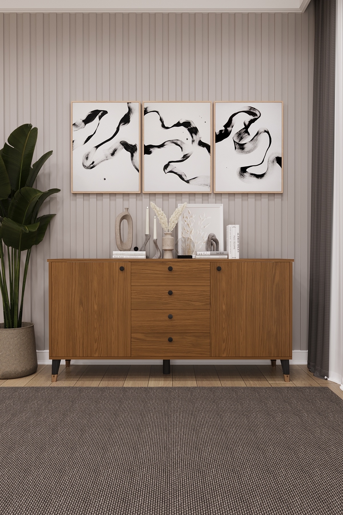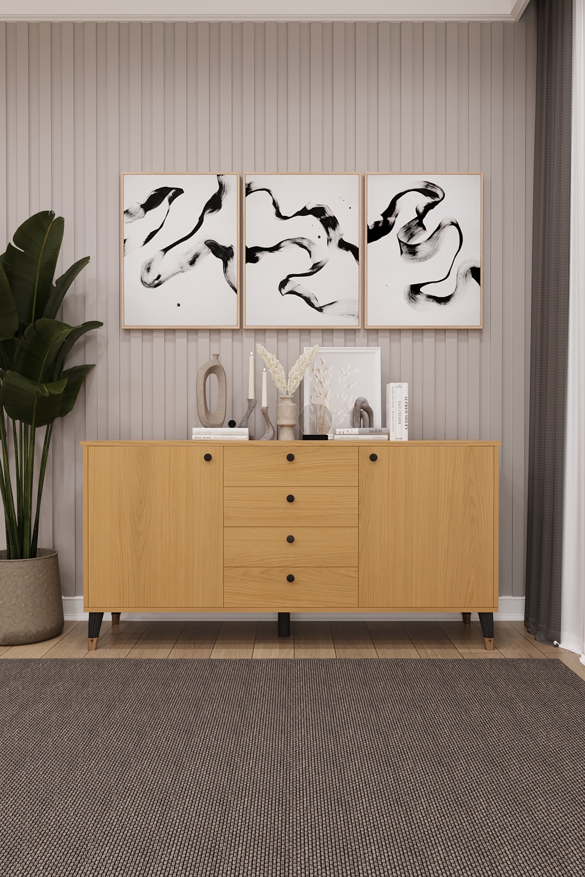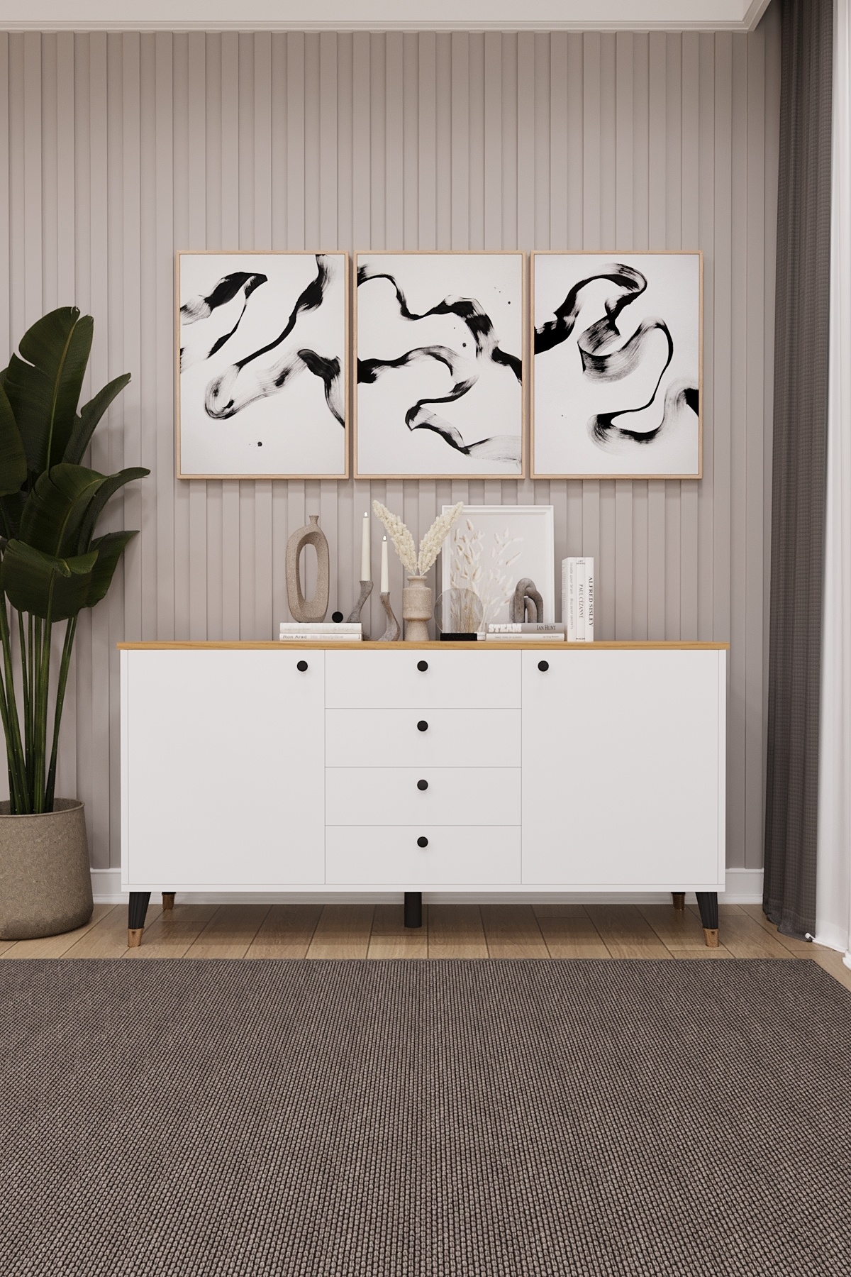 4 Çekmeceli Kapaklı Modern Konsol - Depolama Dolabı Şık TV Ünitesi Salon ve Yemek Odası KNSL-04