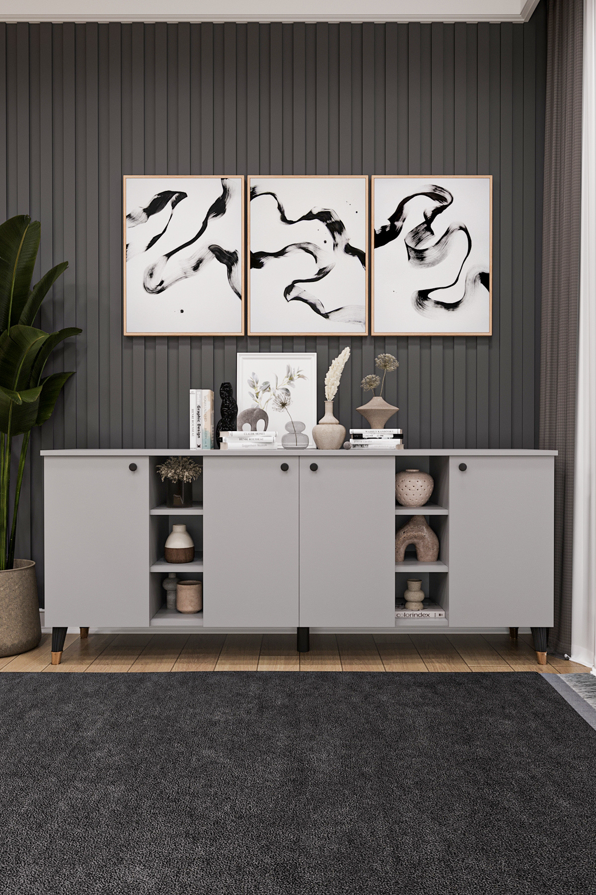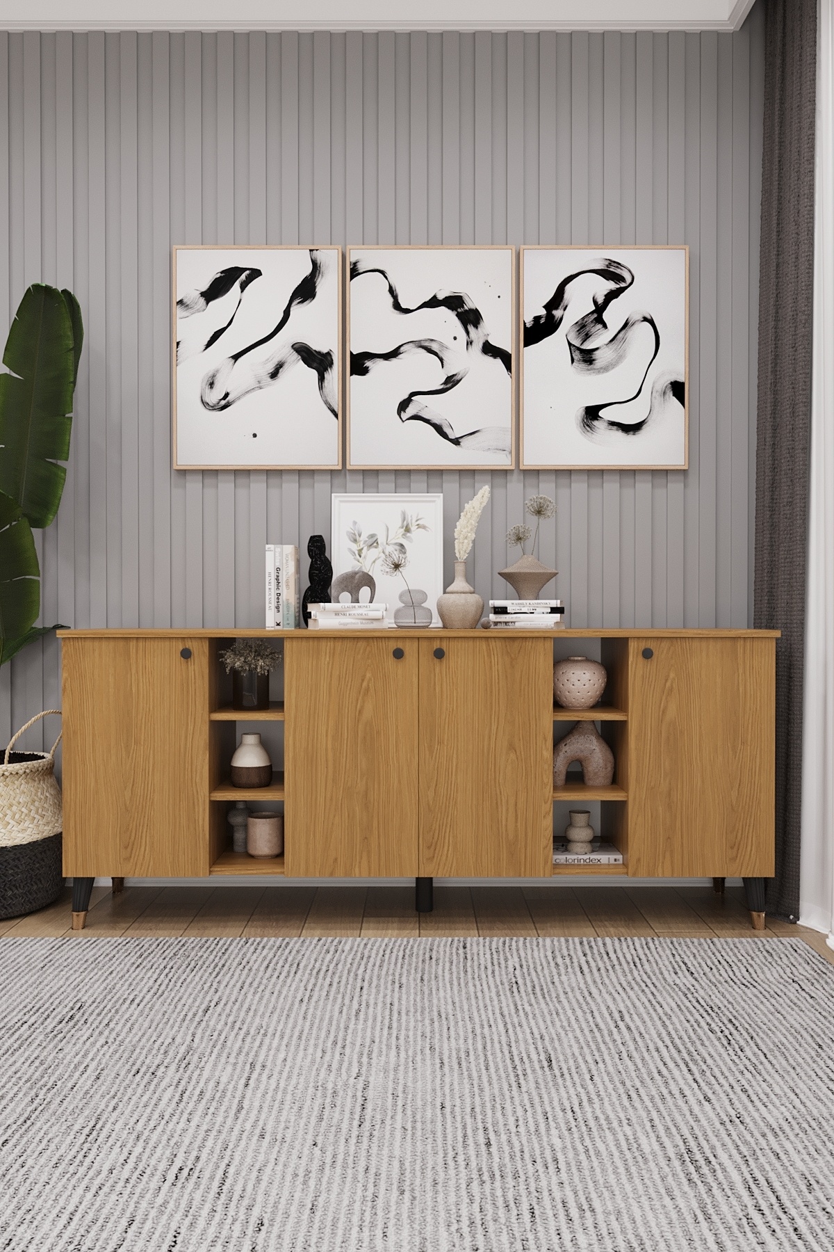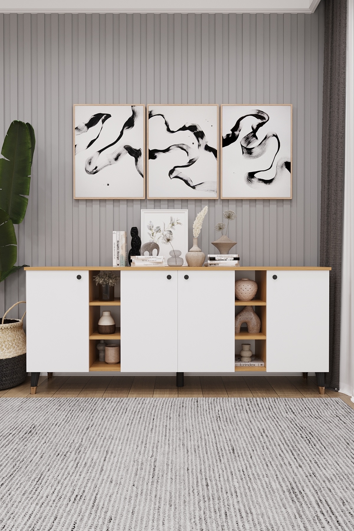 Geniş Konsol - Modern Büfe Dolap - 4 Kapaklı Şık Tasarım Salon ve Yemek Odası Ünitesi KNSL-05