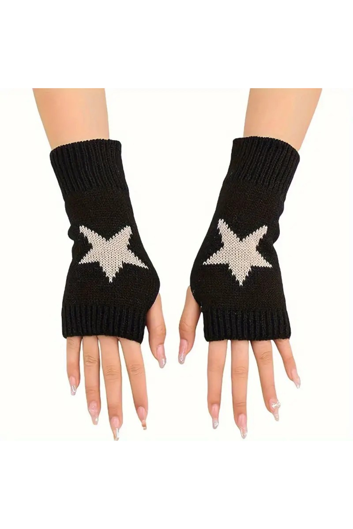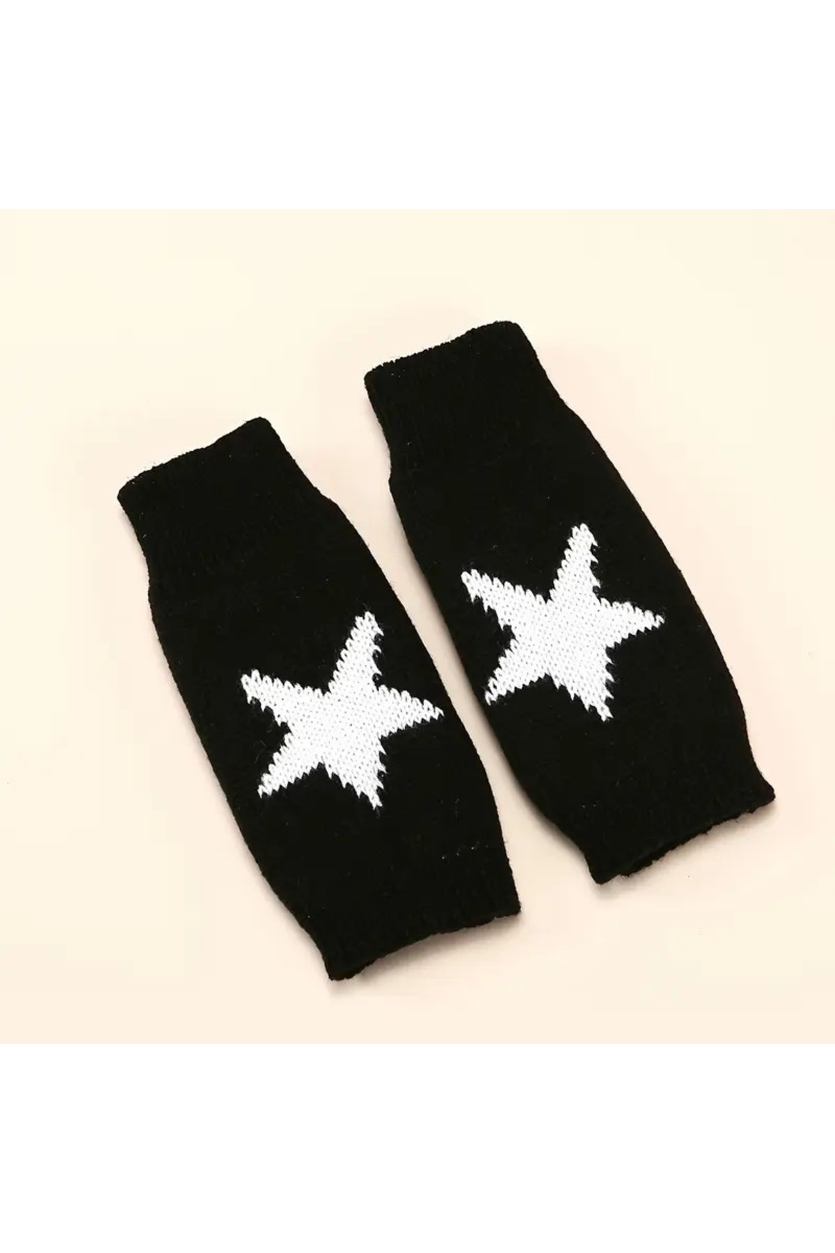 Yıldız Tasarım Parmaksız Örgü Kesik Eldiven Sokak Giyim Moda Tarz