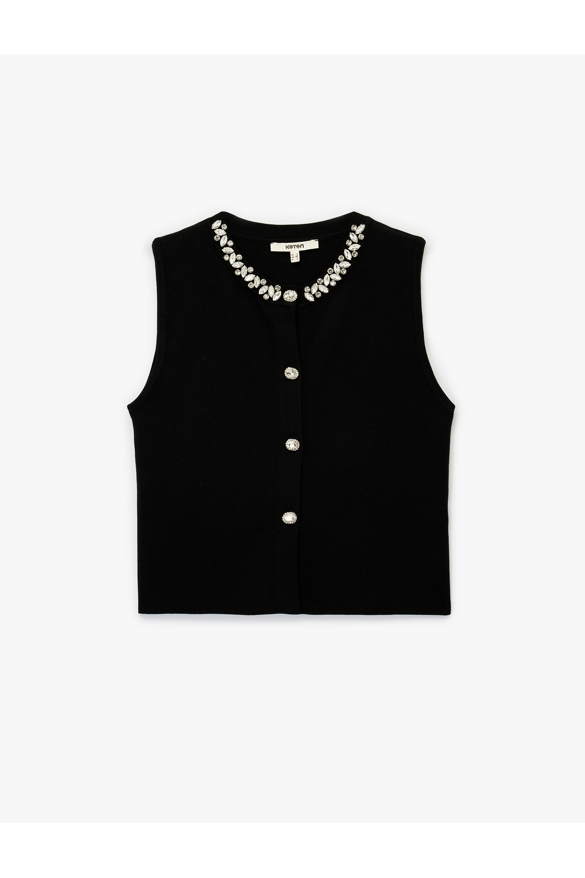Düğmeli Bisiklet Yaka Taşlı Triko Yelek