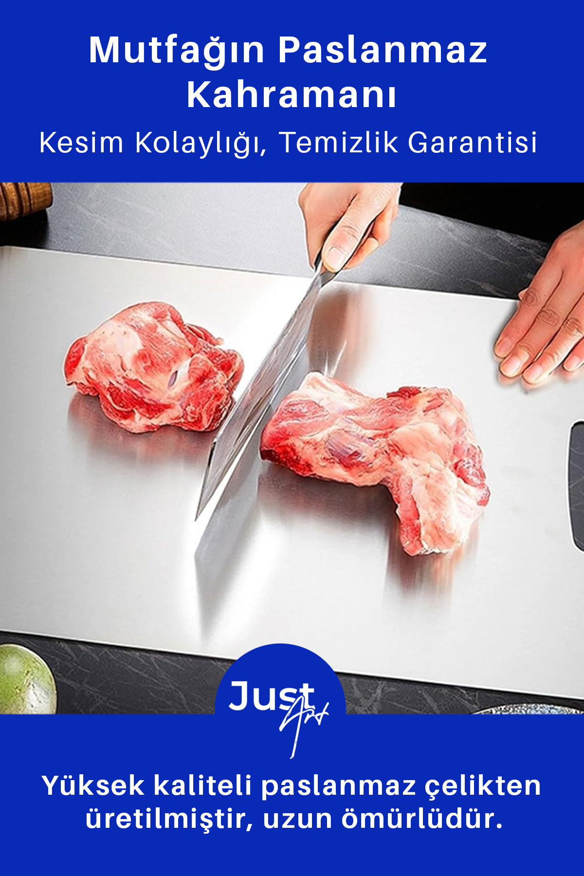 2 Adet Paslanmaz Çelik Mutfak Kesme Tahtası Et Sebze Doğrama Tahtası