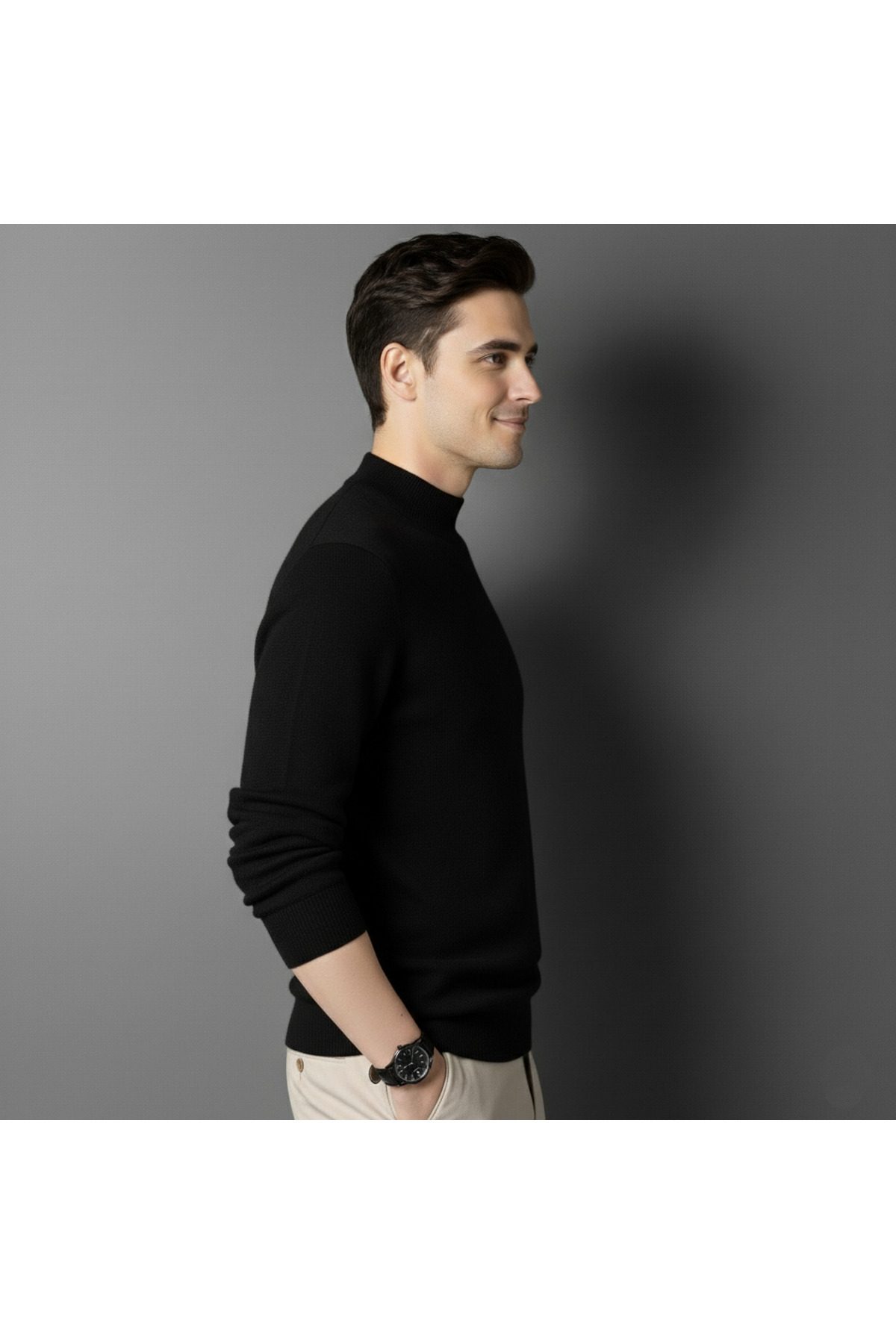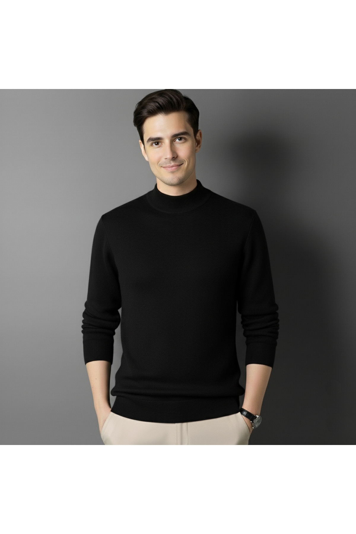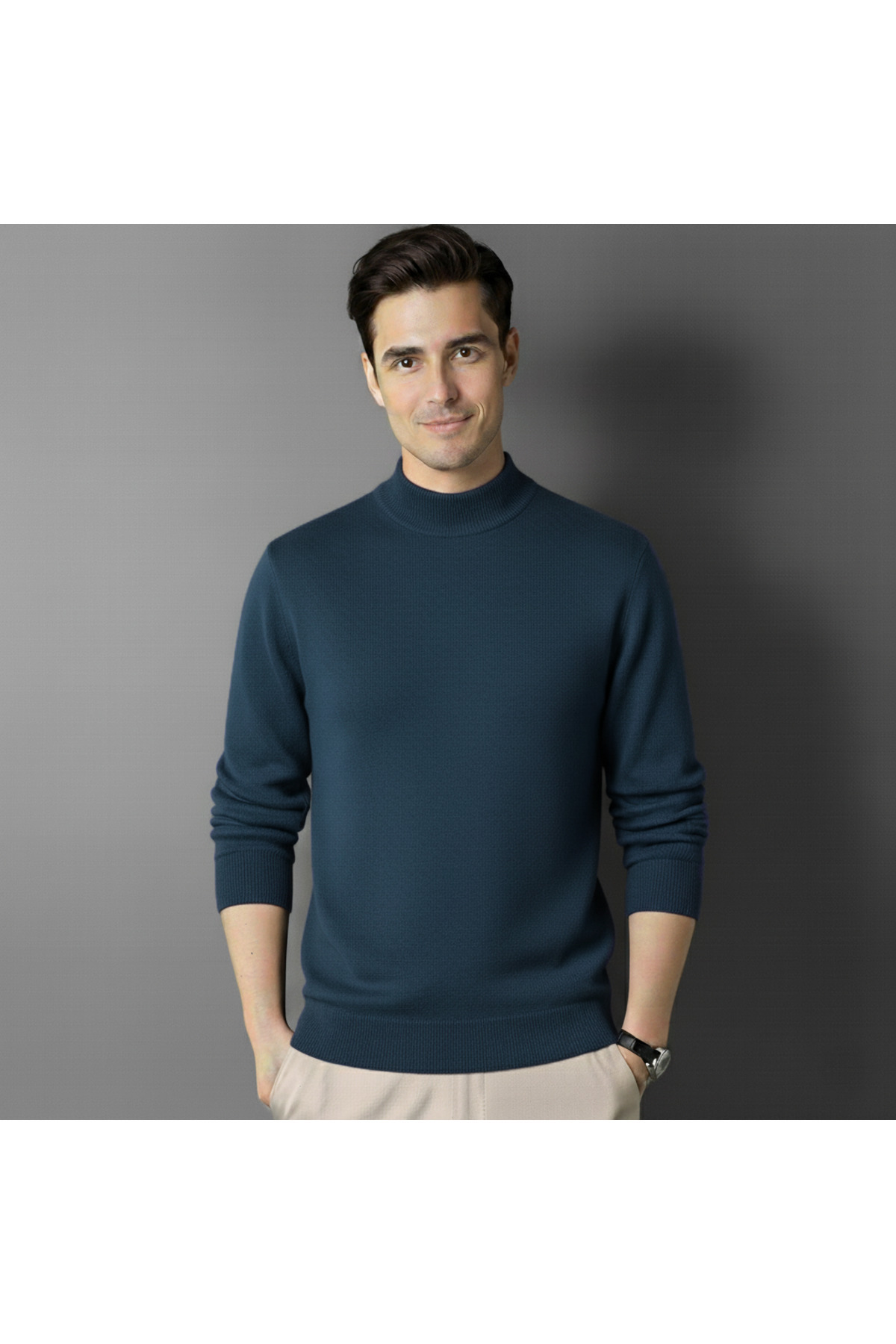 Bu unisex yarım boğazlı kazak, ince akrilik triko kumaştan üretilmiştir