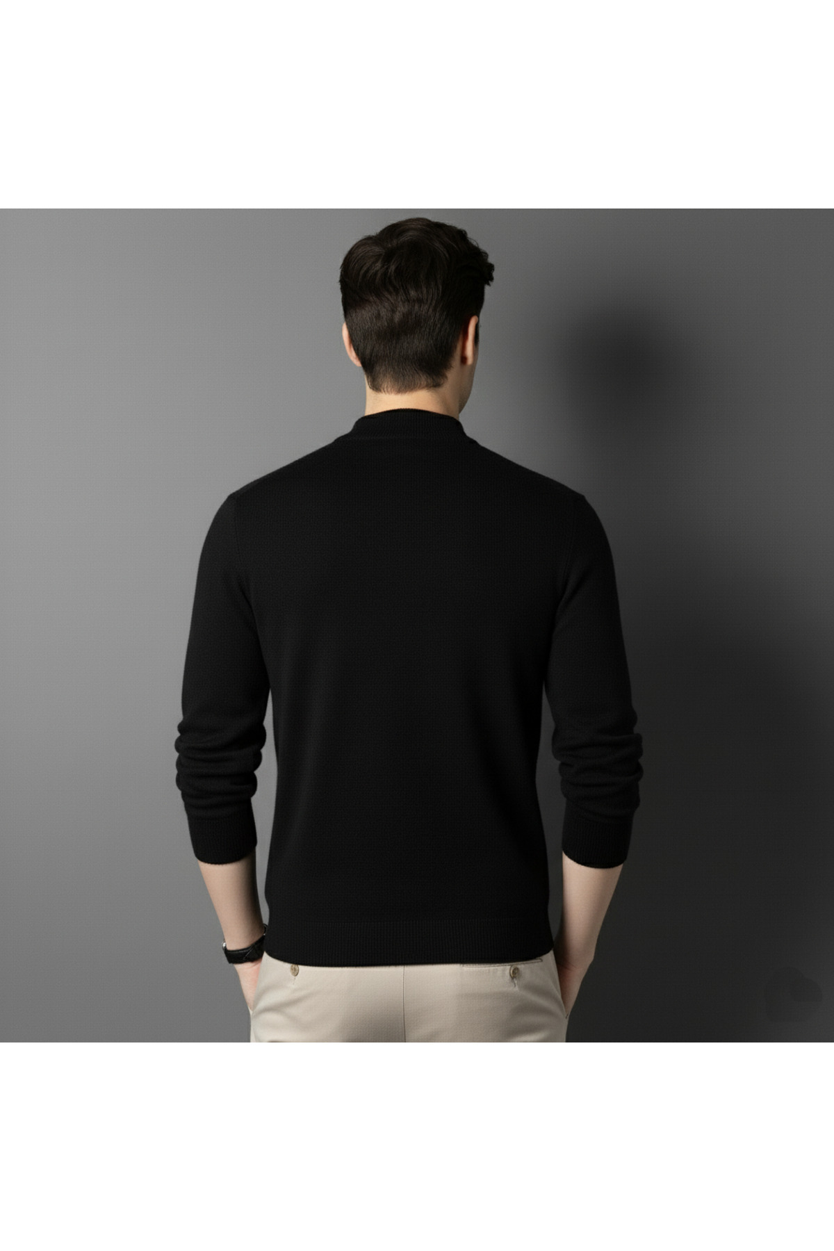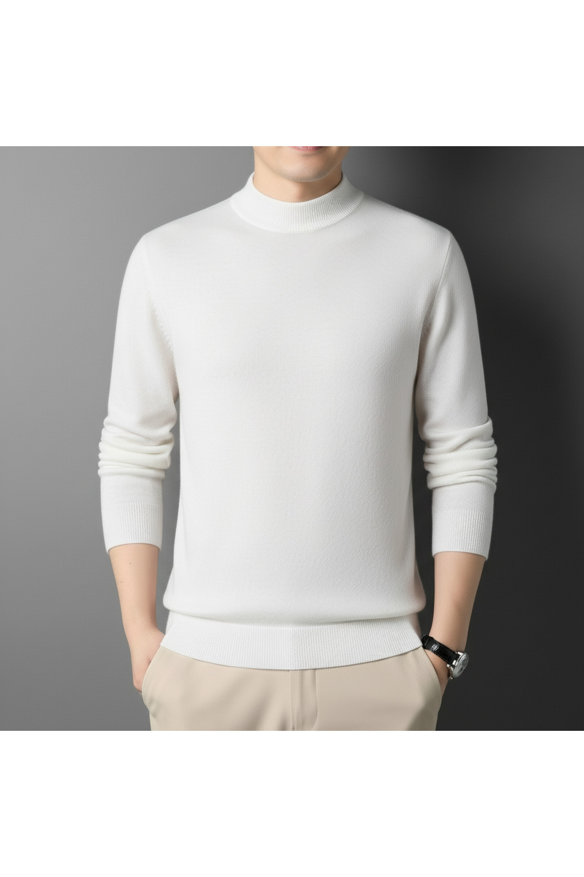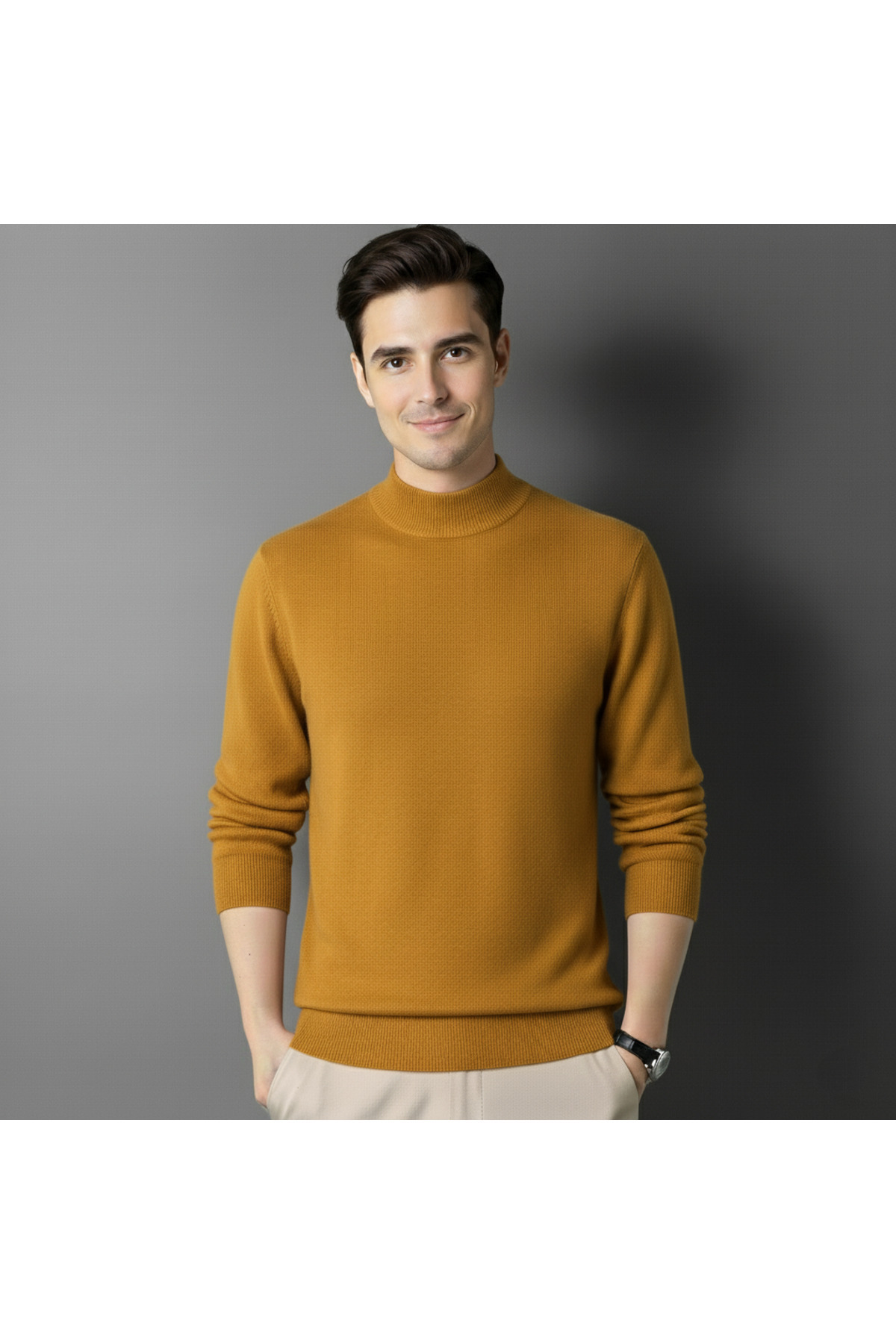 Bu unisex yarım boğazlı kazak, ince akrilik triko kumaştan üretilmiştir