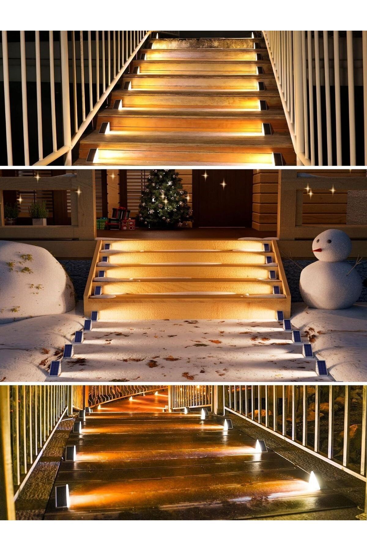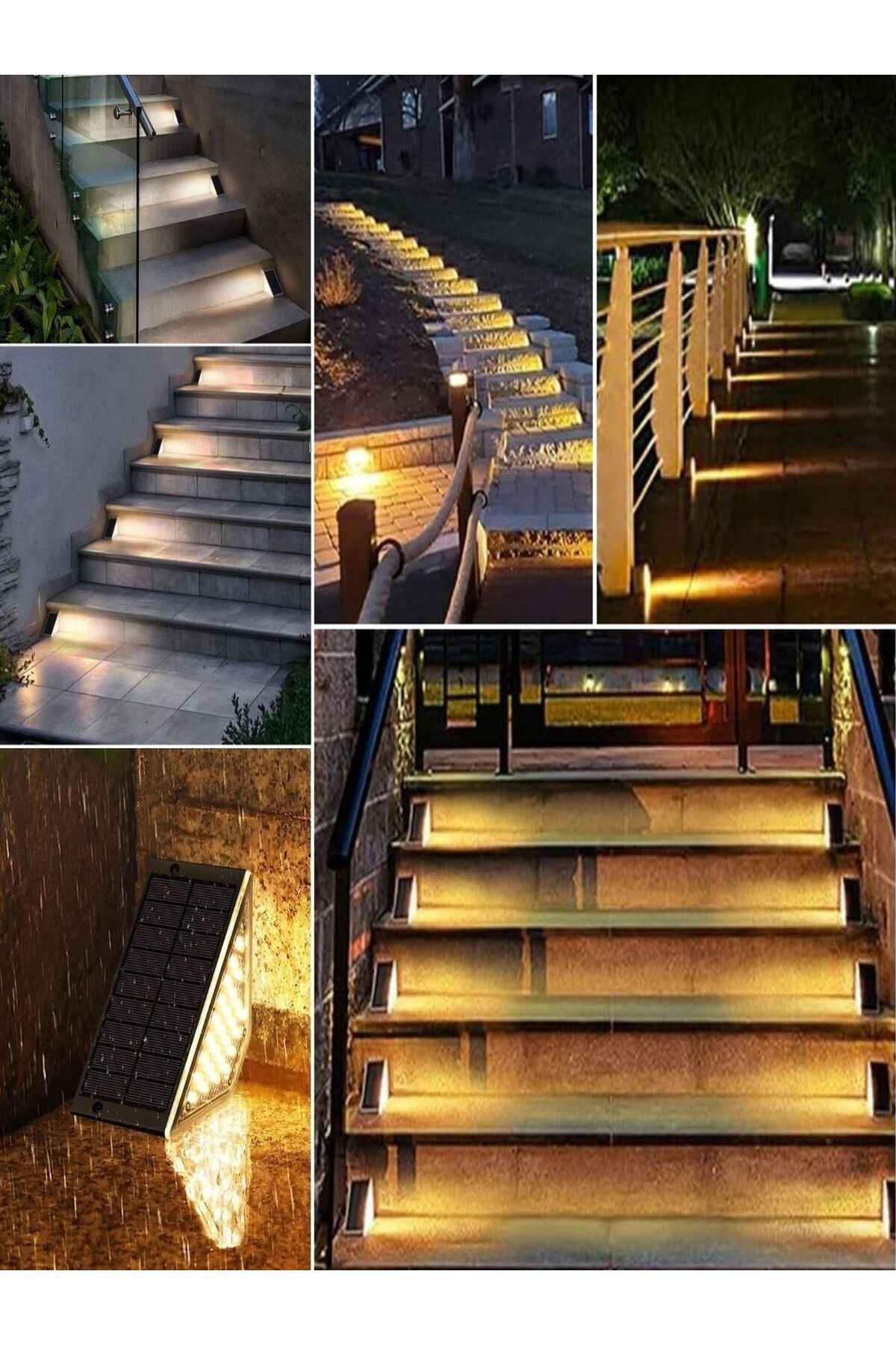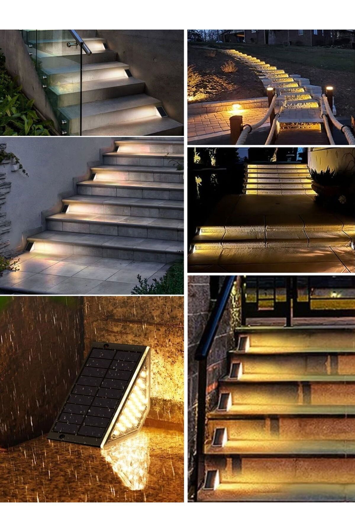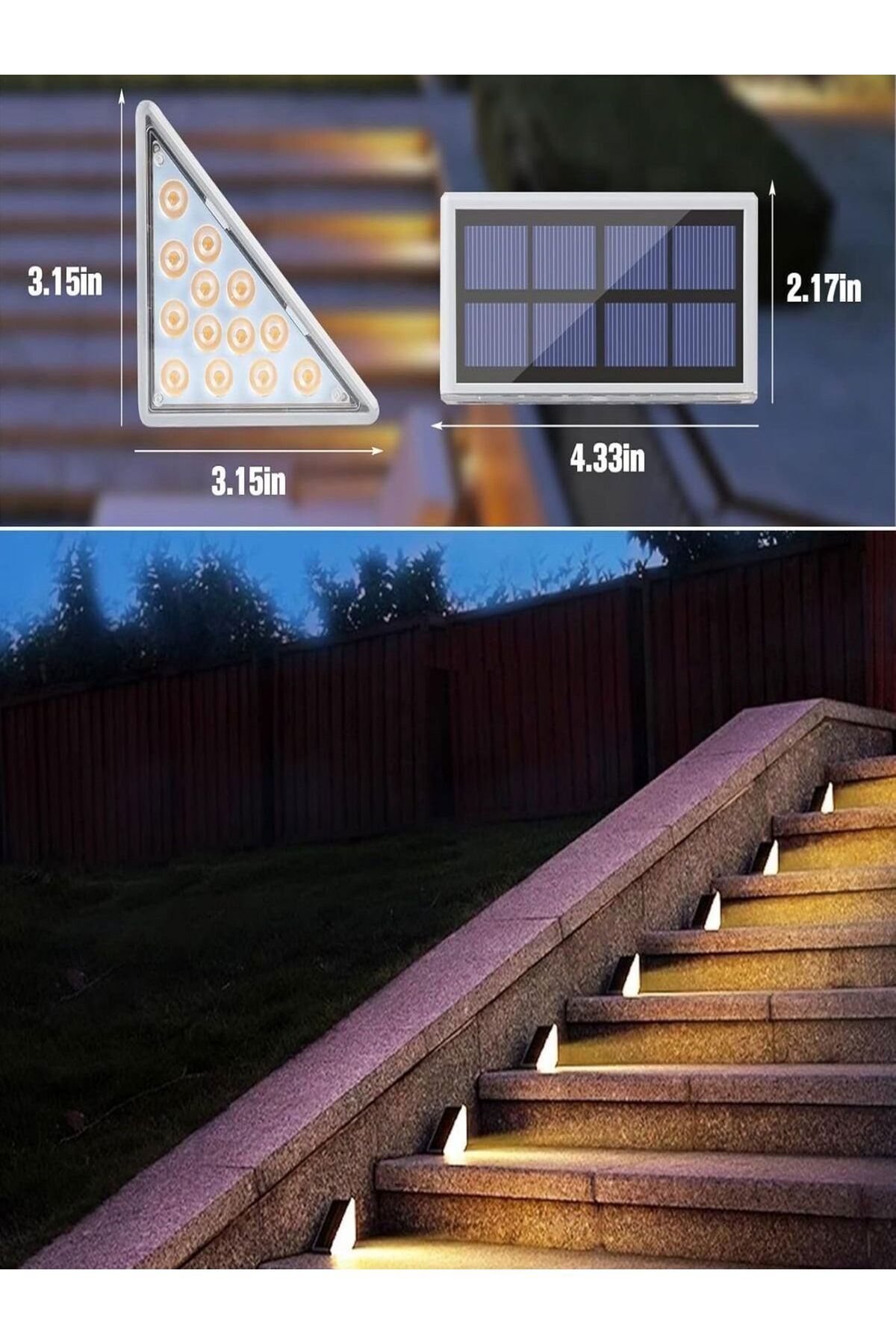 Üçgen güneş enerjisi ile şarj olan dış mekan solar basamak köşe lambası,Güneş enerjisi kullanarak şarj olan bu lamba, enerji tasarrufu sağlar ve çevre dostu bir aydınlatma çözümü sunar.