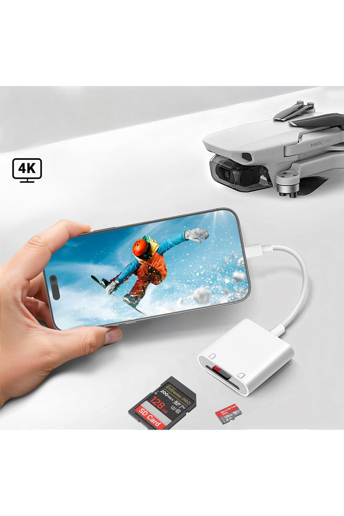 Type-C To SD/Micro SD/TF Kart Okuyucu – Tüm Cihazlarla Uyumlu, Hızlı ve Güvenli Veri Aktarımı!Yeni nesil Type-C girişli telefon, tablet ve bilgisayarlarda (örneğin iPhone 15/16/17 Serisi, iPad, MacBook Pro/Air, Samsung Galaxy ve diğer Type-C destekli cihazlar) kullanıma uygun çoklu kart okuyucu ile fotoğraf, video, müzik ve belge aktarımını saniyeler içinde gerçekleştirin.