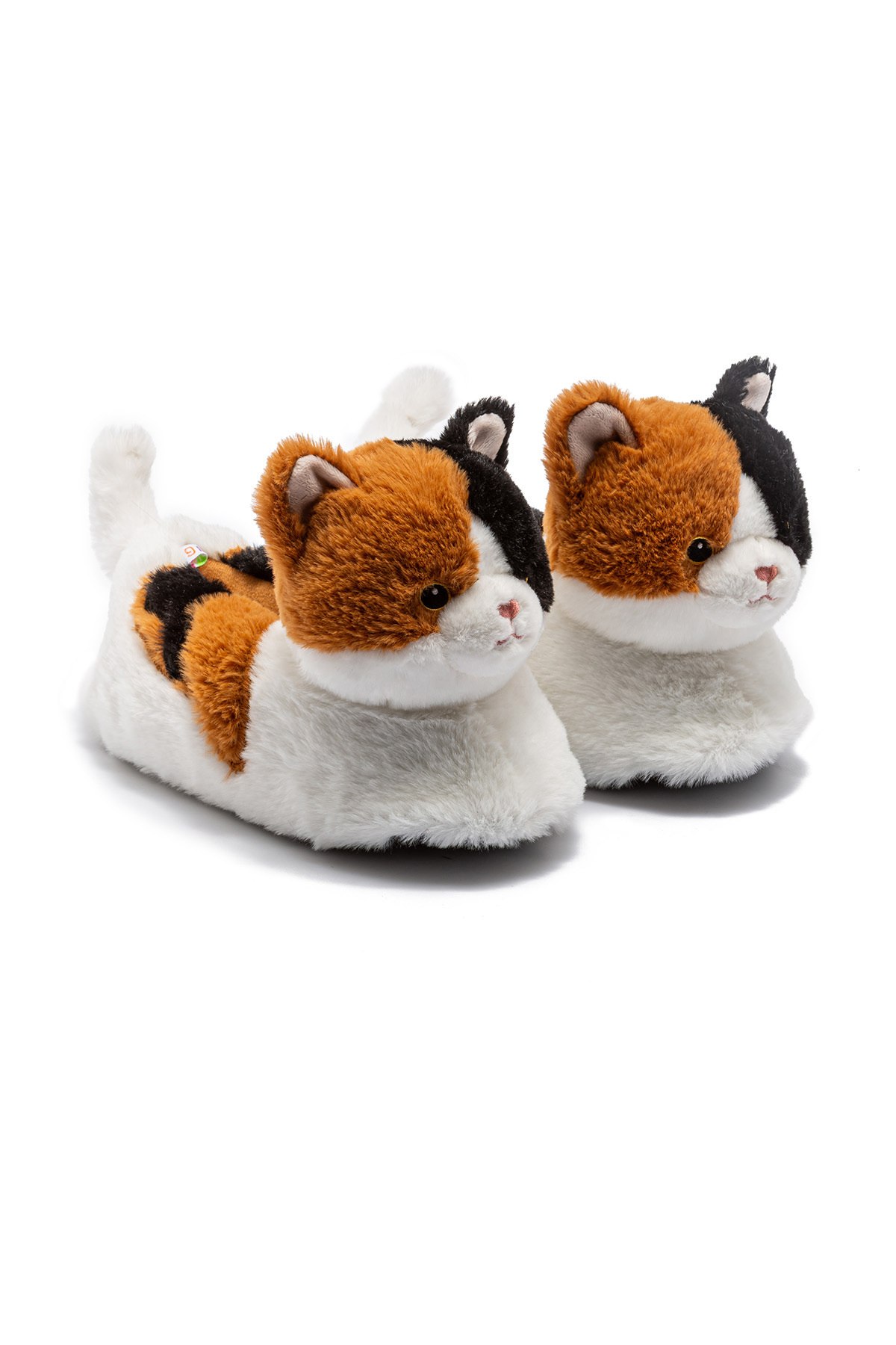 Renkli Kedi Kadın Hayvanlı Panduf Beyaz-Kahverengi 36/41
