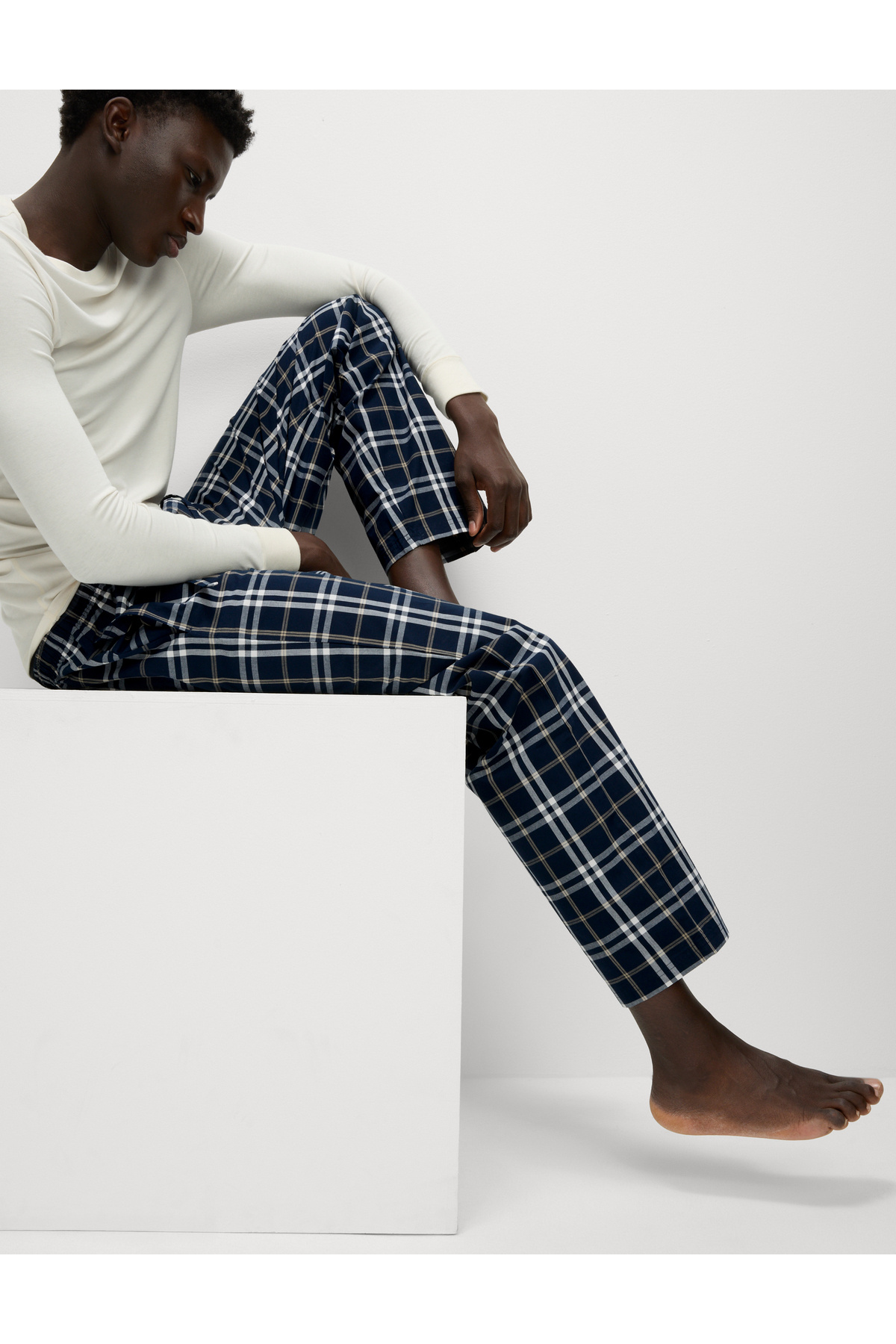2’li Saf Pamuklu Kareli Pijama Altı