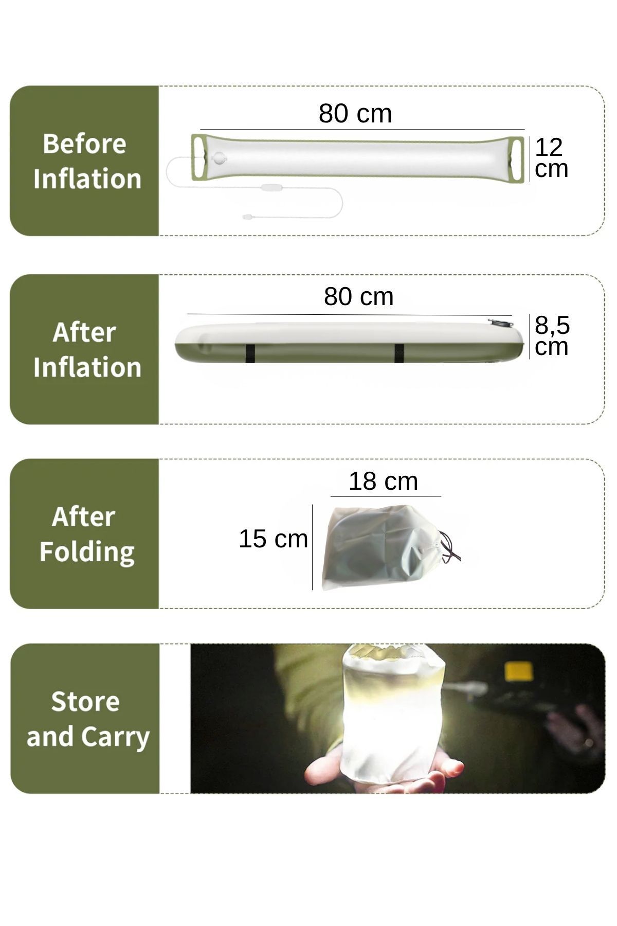* 500 lümene kadar LED ışık * Giriş voltajı: 5V/2A * Güç tüketimi: 8W * Kullanımı kolay bir USB girişiyle çalışır, şarjlı değildir, * Hızlı ve kolay şişirme ve söndürme * Hypalon karabina halkası * Suya dayanıklı *3 farklı ışık modu ve ayarlanabilir ışık seviyesi * 2 adet manyetik mıknatıslı bağlantı noktası