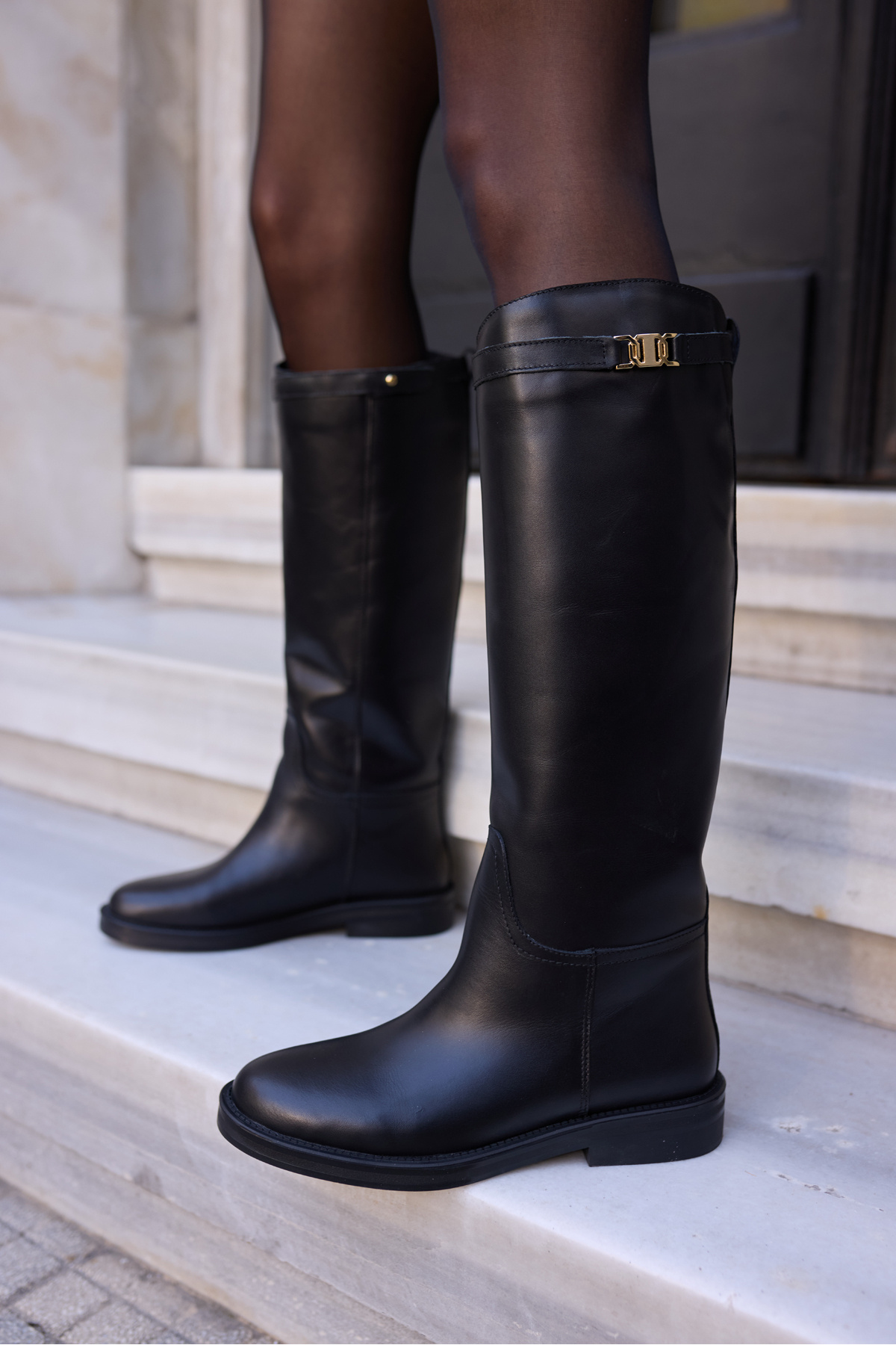 - Hakiki deri malzemesi ile üretilmiş, dayanıklılığı ve şıklığı bir arada sunan kadın binici çizme.