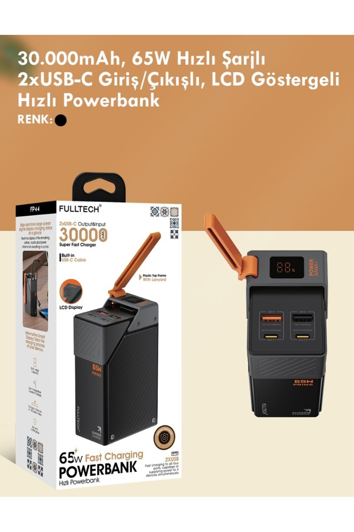 - 30.000mAh yüksek kapasiteli pil gücüyle, uzun süreli cihaz kullanımınızı kesintisiz sürdürebilirsiniz.