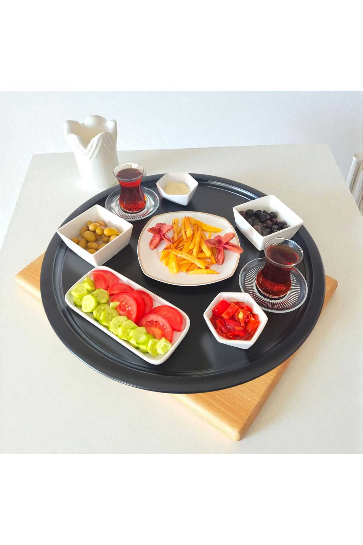 50 cm çapındaki geniş yüzeyi ile geniş servis imkanı sunarak sofralarınızda şık bir görünüm oluşturur