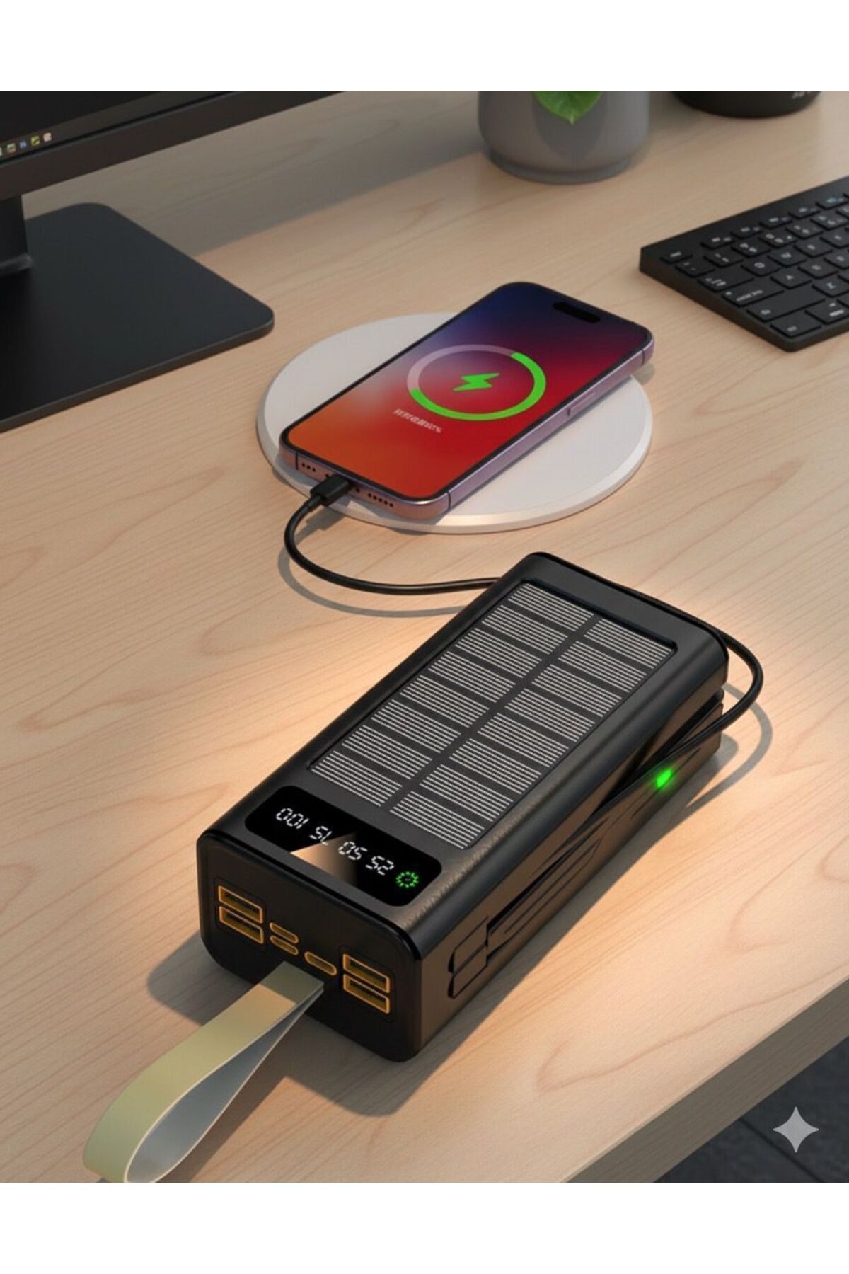 Solar 30.000 Mah Güneş Enerjili Led Işıklı Powerbank Şarj Aleti 4x Usb Çıkış Çoklu Şarj Kablo