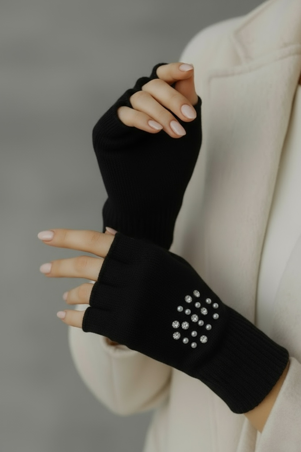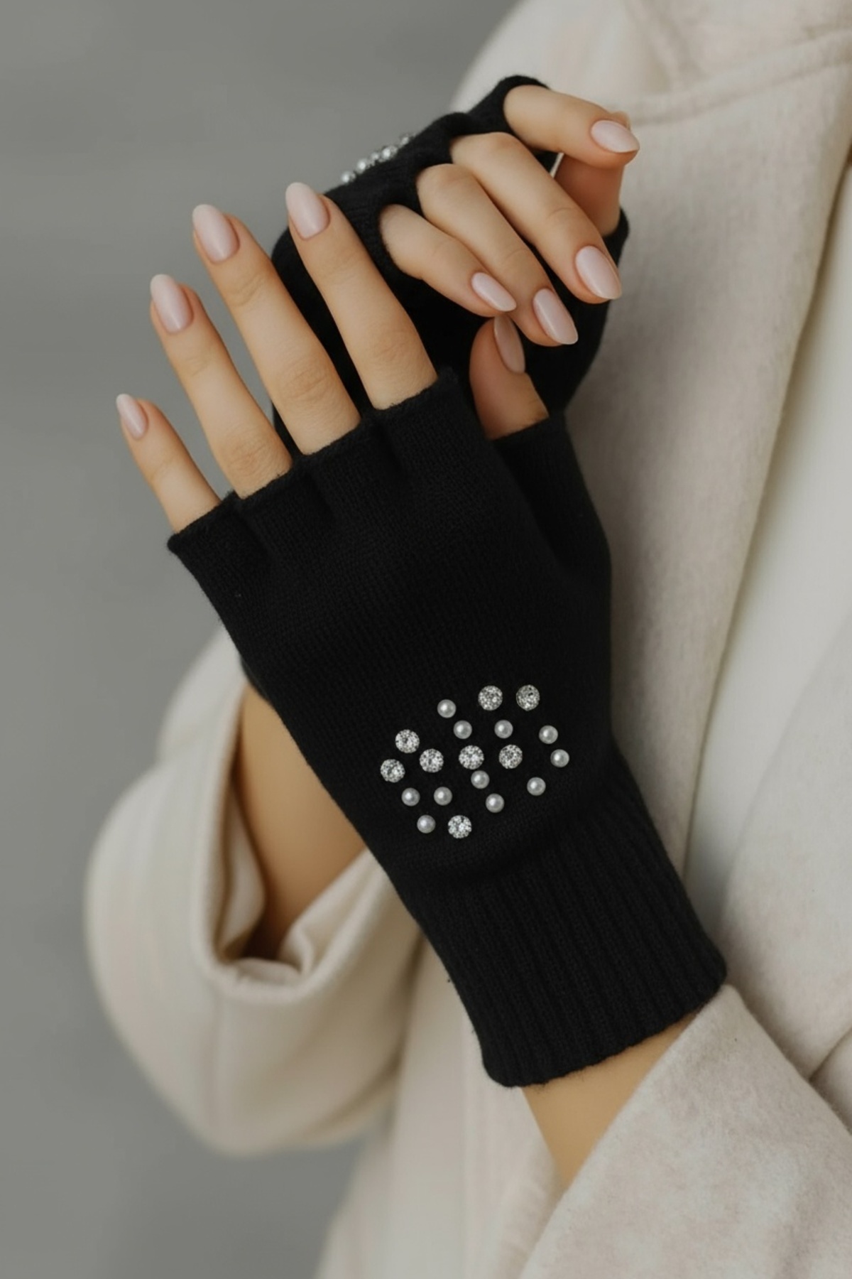 - Zarif taş ve inci detaylarıyla göz alıcı bir görünüm kazanan bu eldiven, şıklığınızı tamamlar.