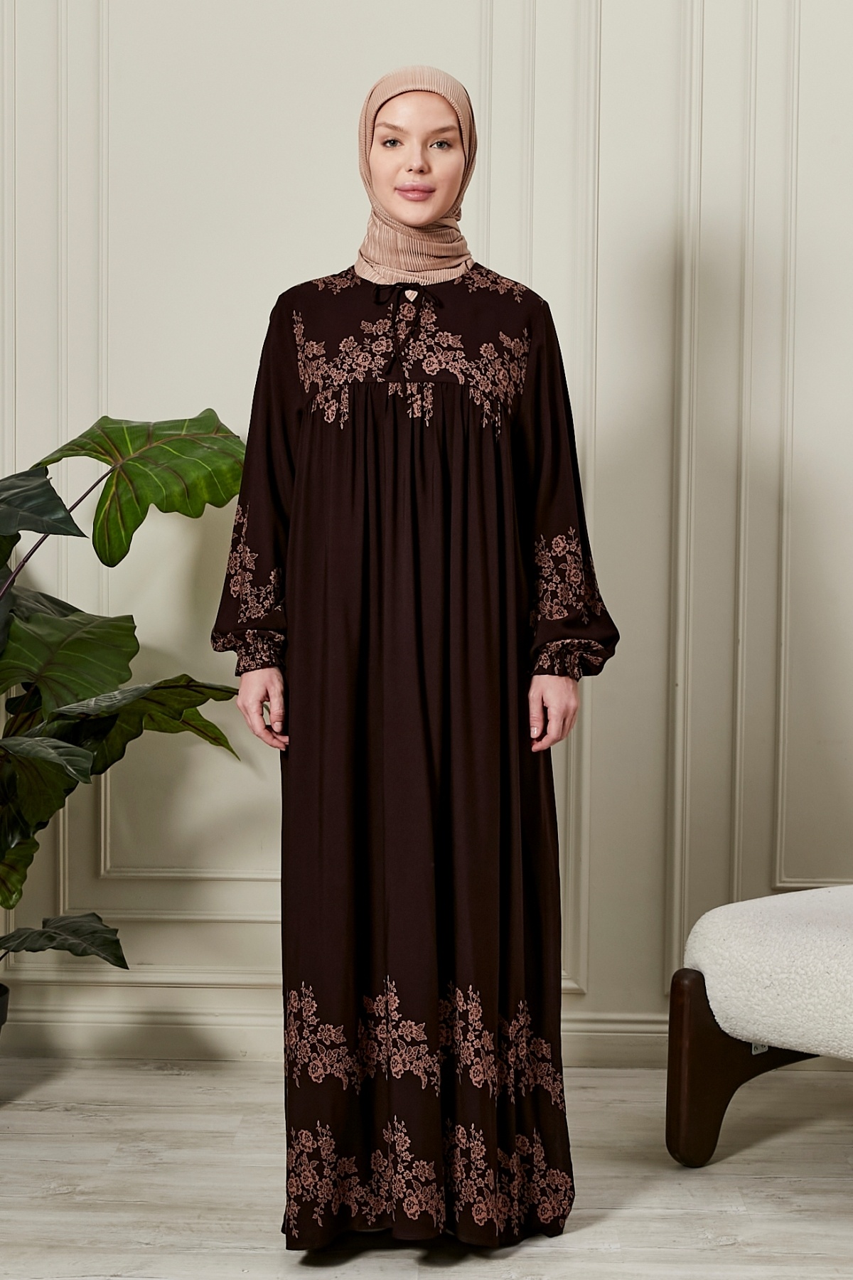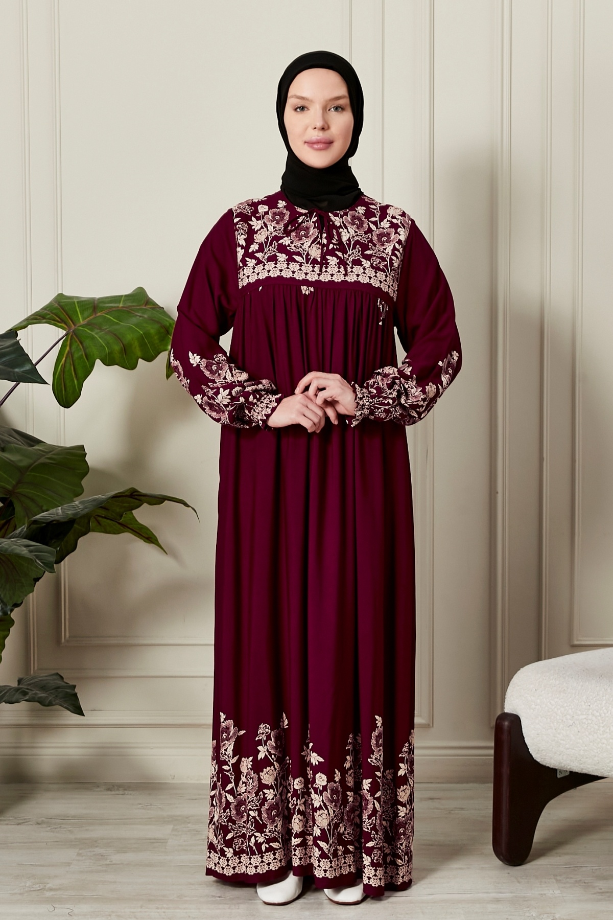 - Tesettür giyim için ideal olan bu elbise, modern silueti ile göz alıcı bir stil yaratır.