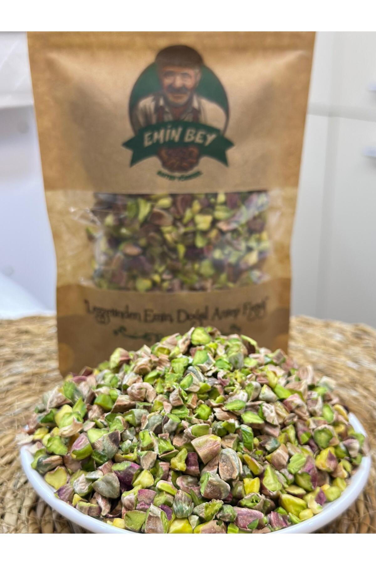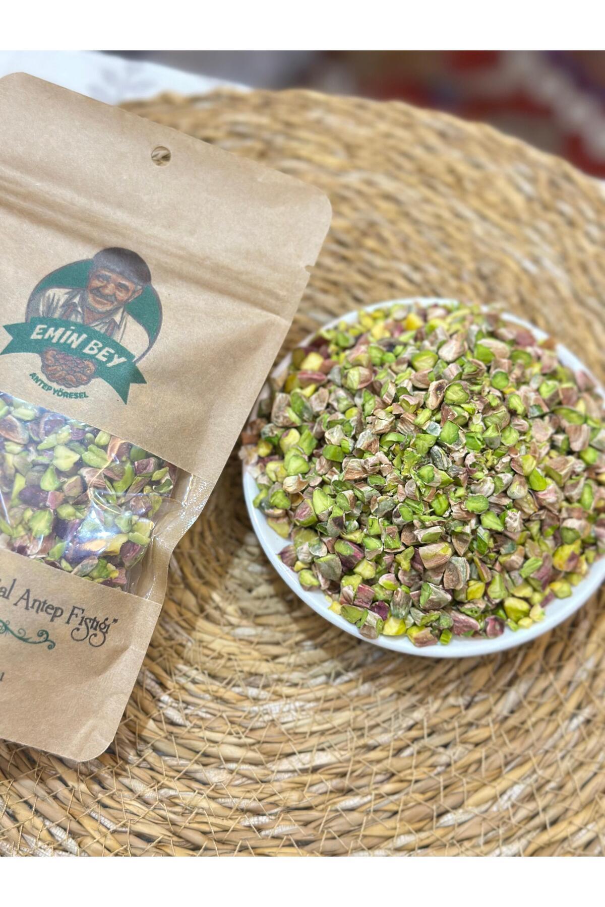 Gaziantep’in en kaliteli fıstıklarının iri parçalar halinde kırılmasıyla elde edilen bu ürün, canlı yeşil rengi ve yoğun aromasıyla tariflerinizi bambaşka bir seviyeye taşır.
