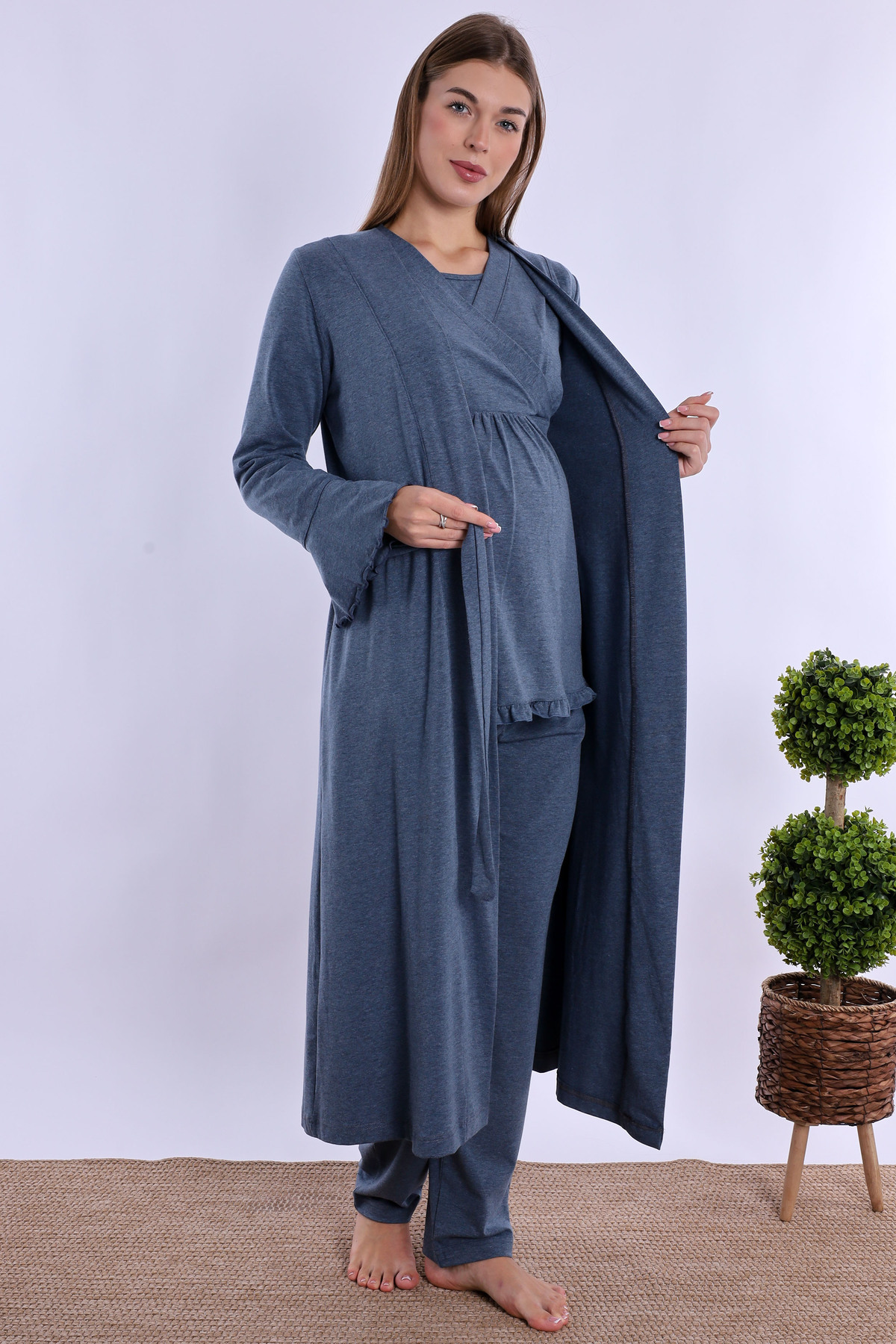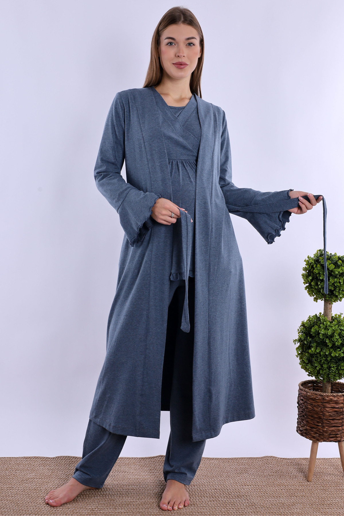 Takım sabahlık, ve pijama takımından oluşmaktadır,