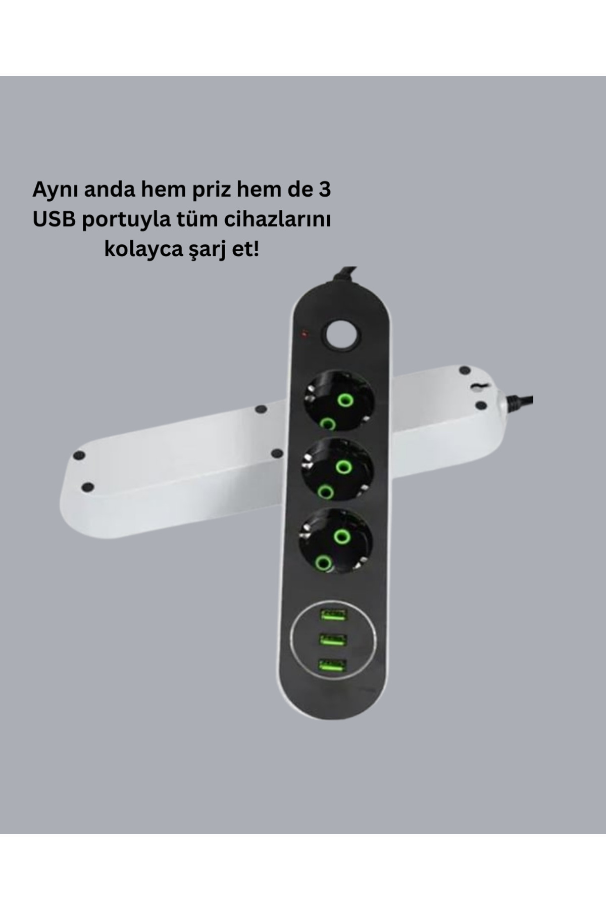 • USB Yuvalı Anahtarlı Üçlü Priz 2 Metre Kablolu