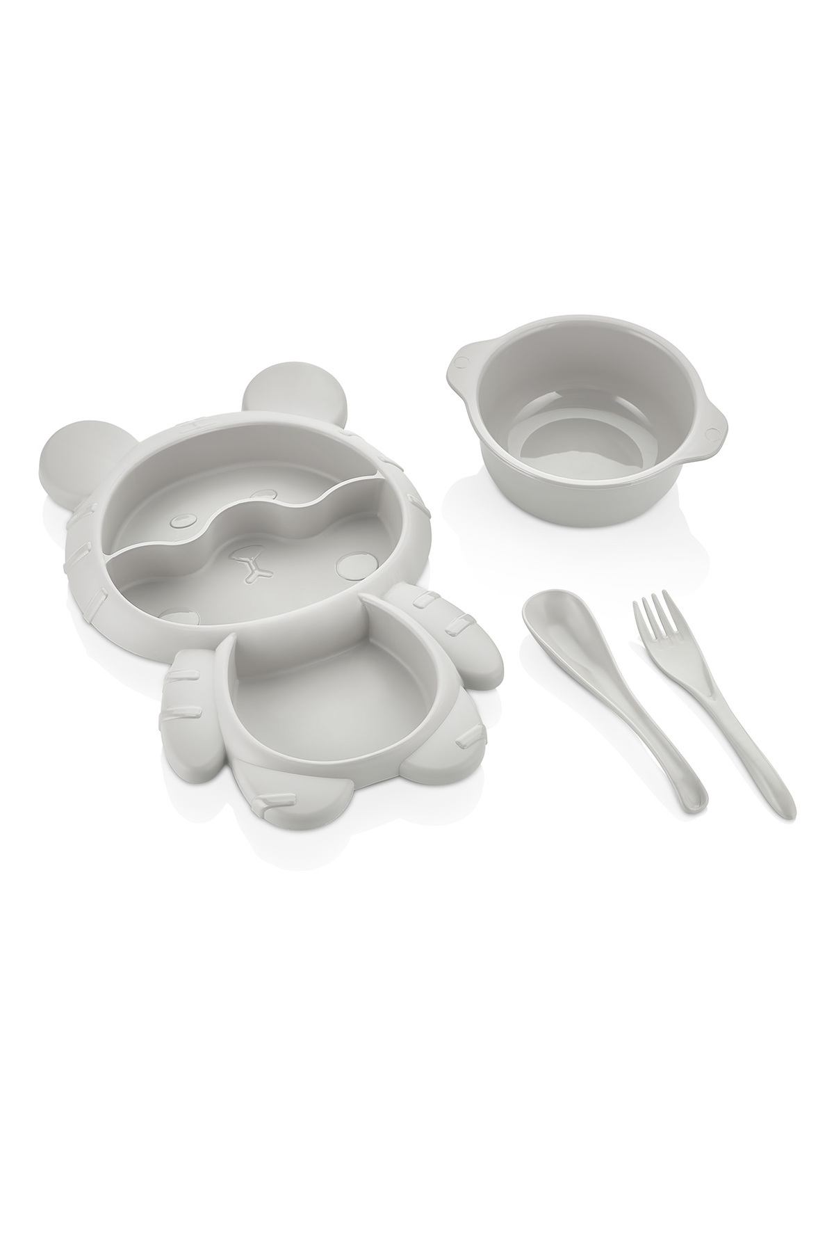 Ayıcık Şekilli 3 Bölmeli 4 Parça Çocuk Bebek Mama Tabağı + Çorba Kasesi-Çatal Kaşıklı Beslenme Kabı
