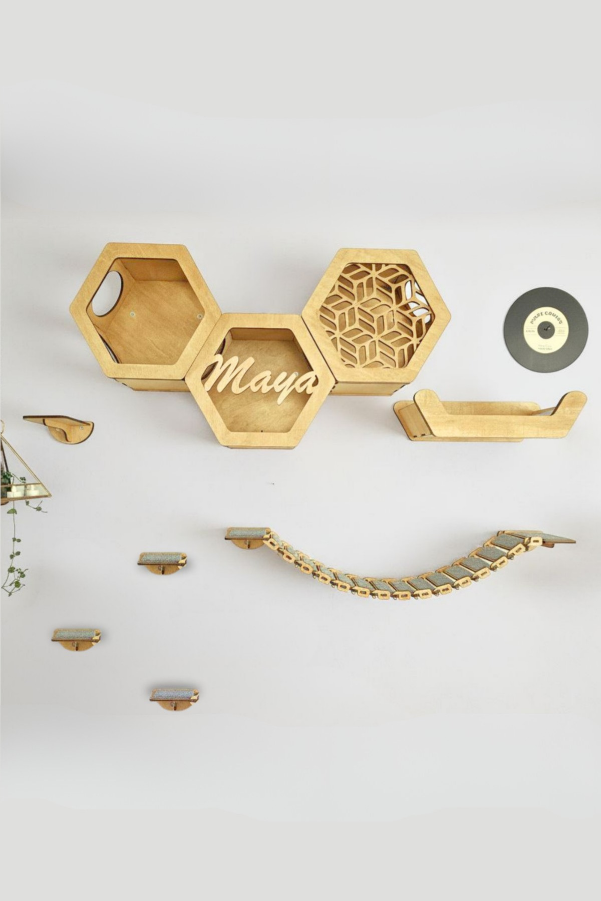 Raf ve tüm basamaklarda kedinizin daha iyi tutunabilmesini sağlamak için halıflex kaplama yapılmıştır Dekoratif tasarımıyla evinizin dekoruna modern bir dokunuş katar.