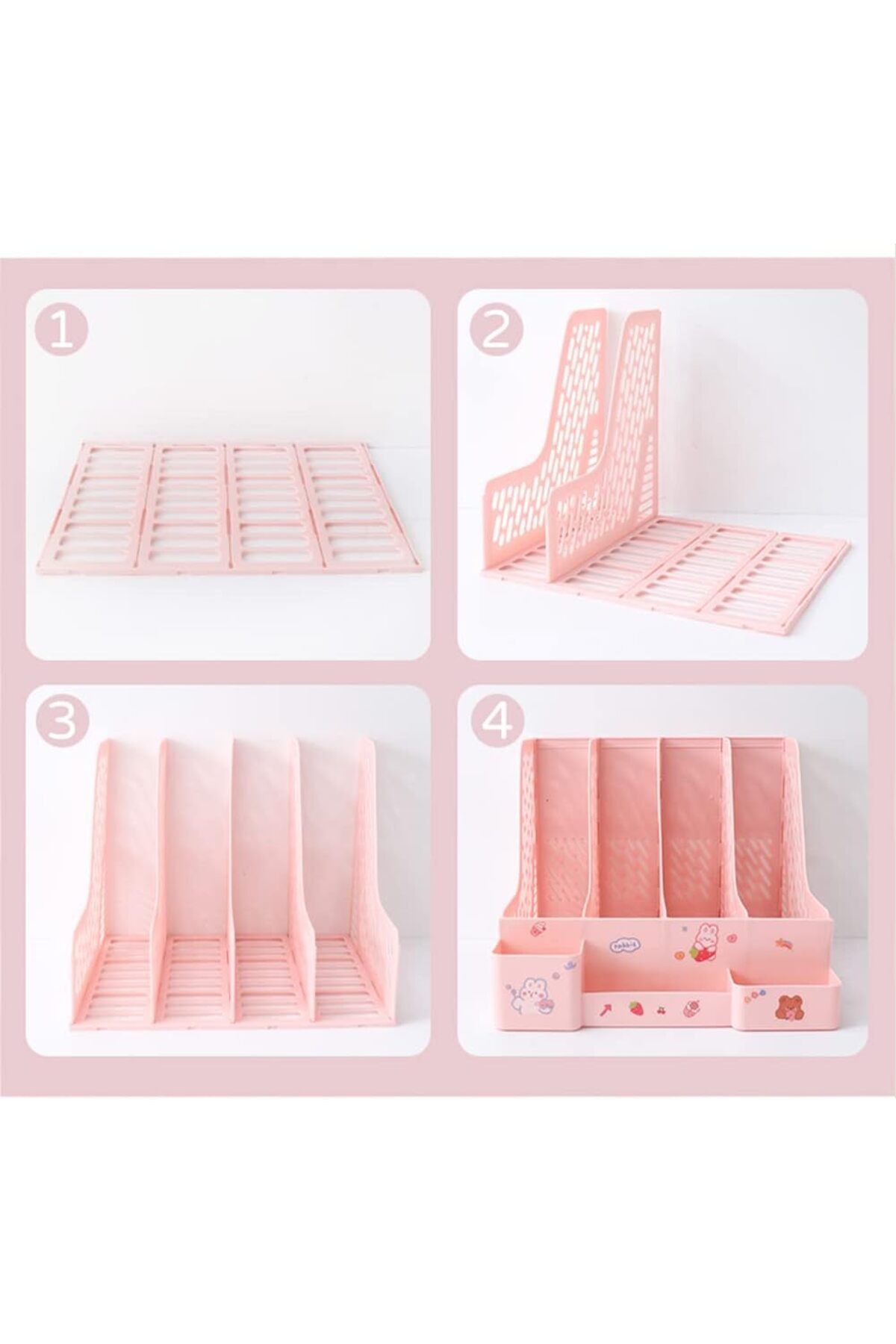 MG 123 Pembe 3 Bölmeli Modüler Tasarım Organizer Kalemlikli Magazinlik Klasör Arşiv Kutusu Demonte