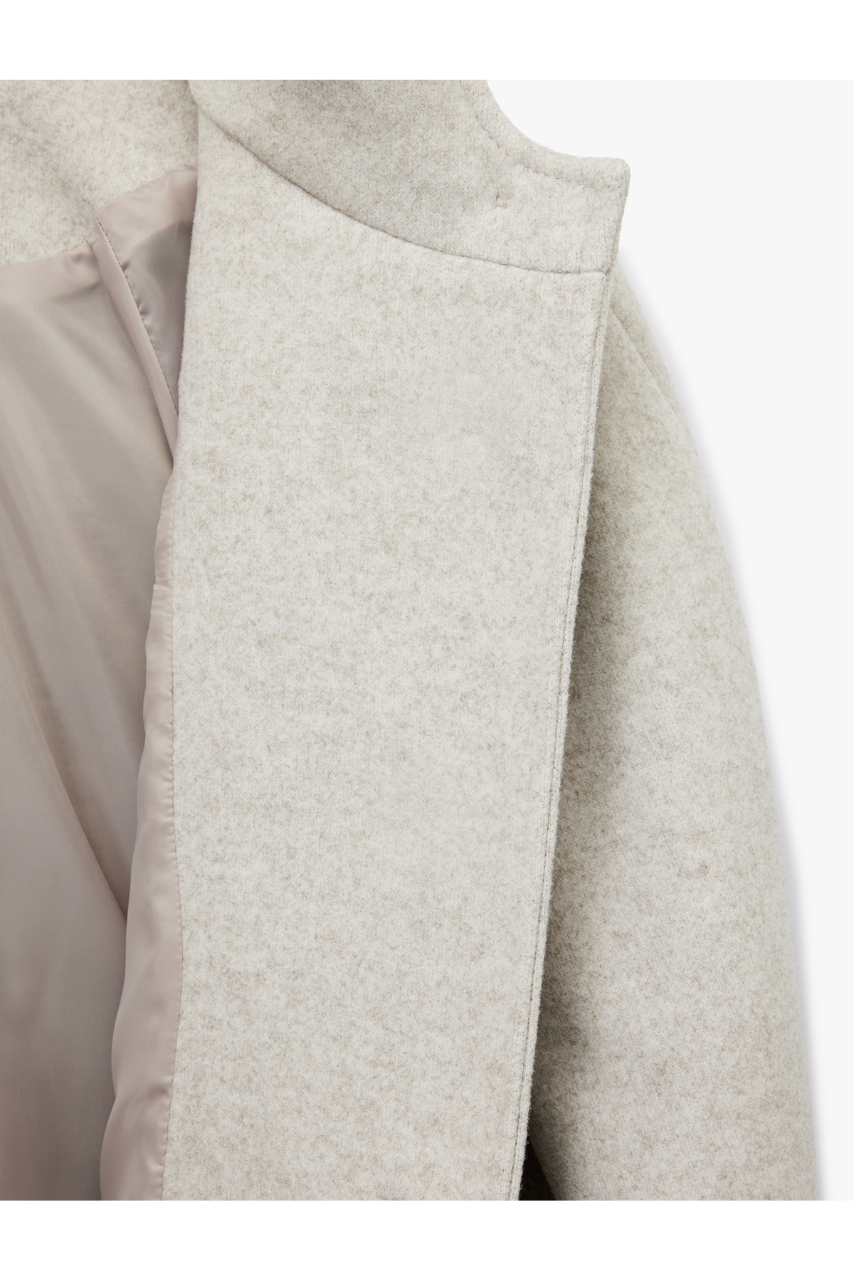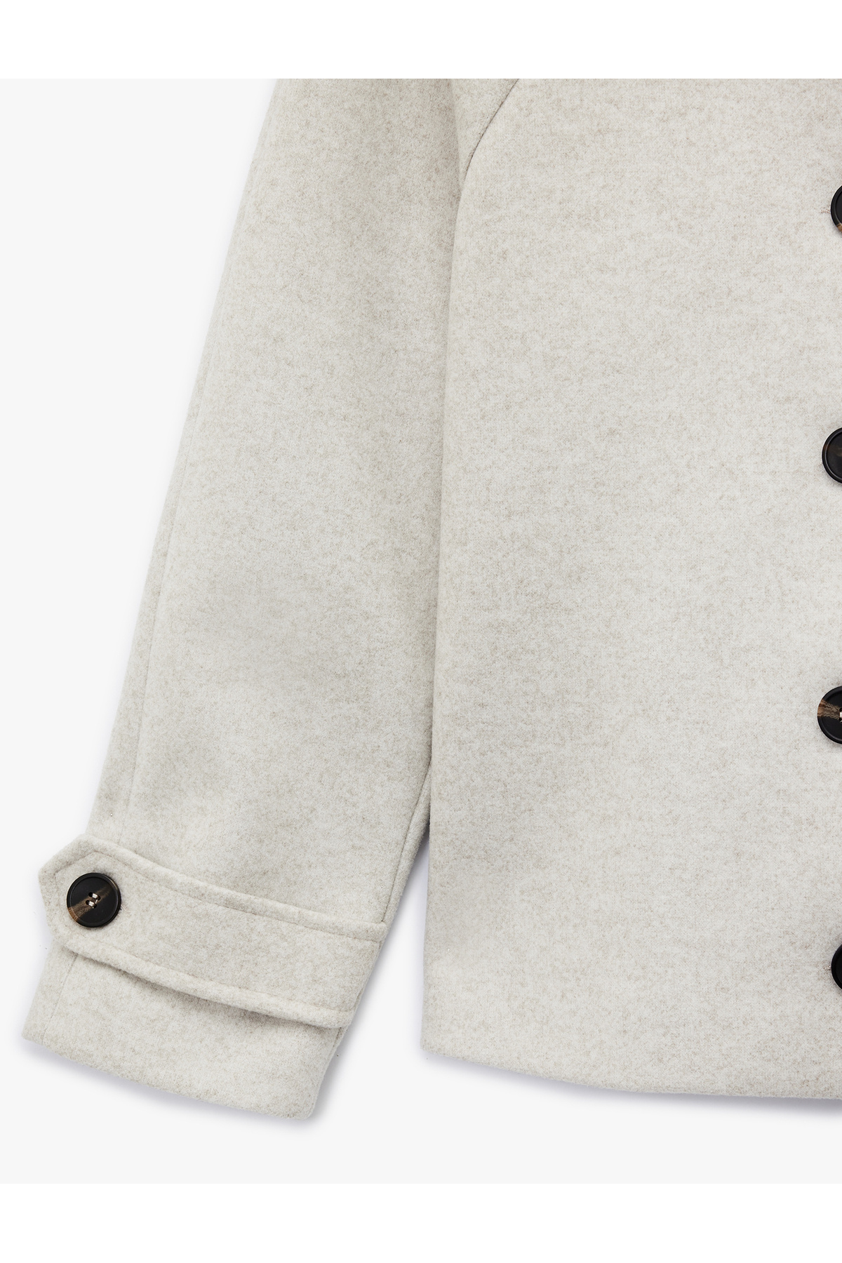 Uzun Kollu Cepli Düğmeli Kapüşonlu Kısa Kaşe Kaban