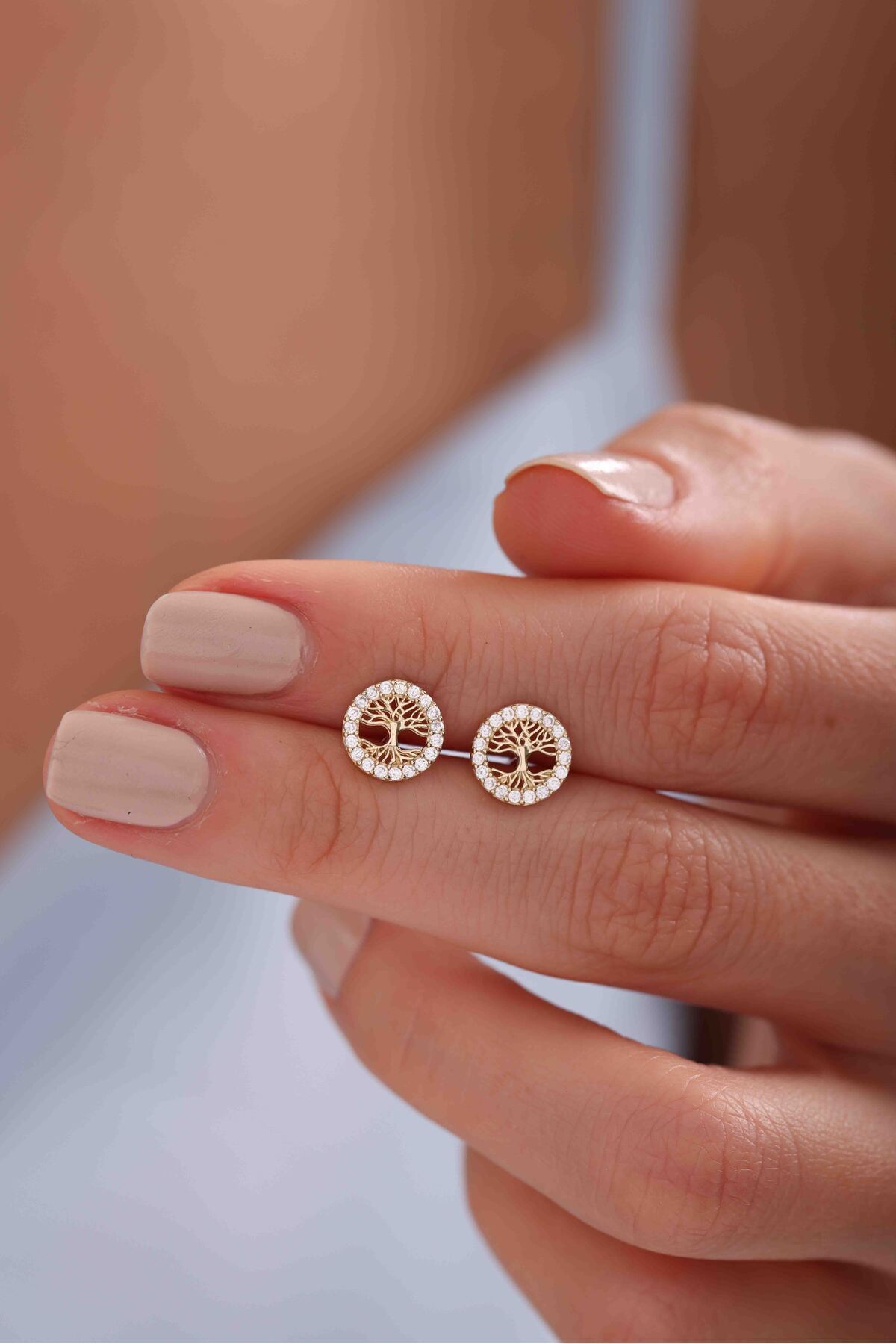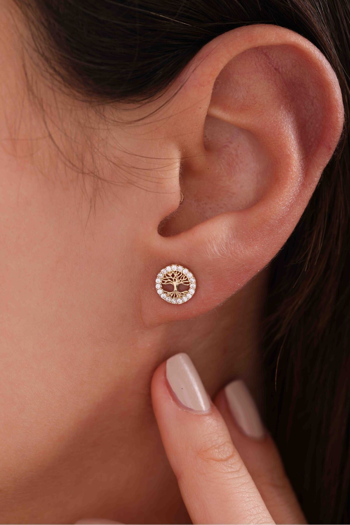 • 14 Ayar Altın Taşlı Hayat Ağacı Küpe