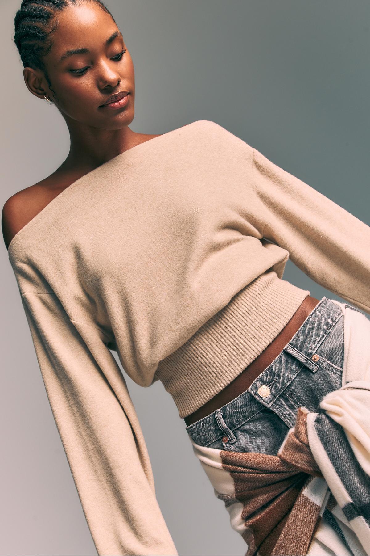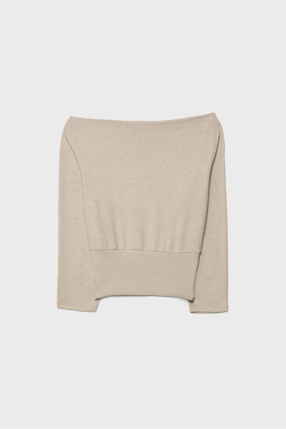 Yumuşak dokulu, kayık yaka, uzun kollu tişört.