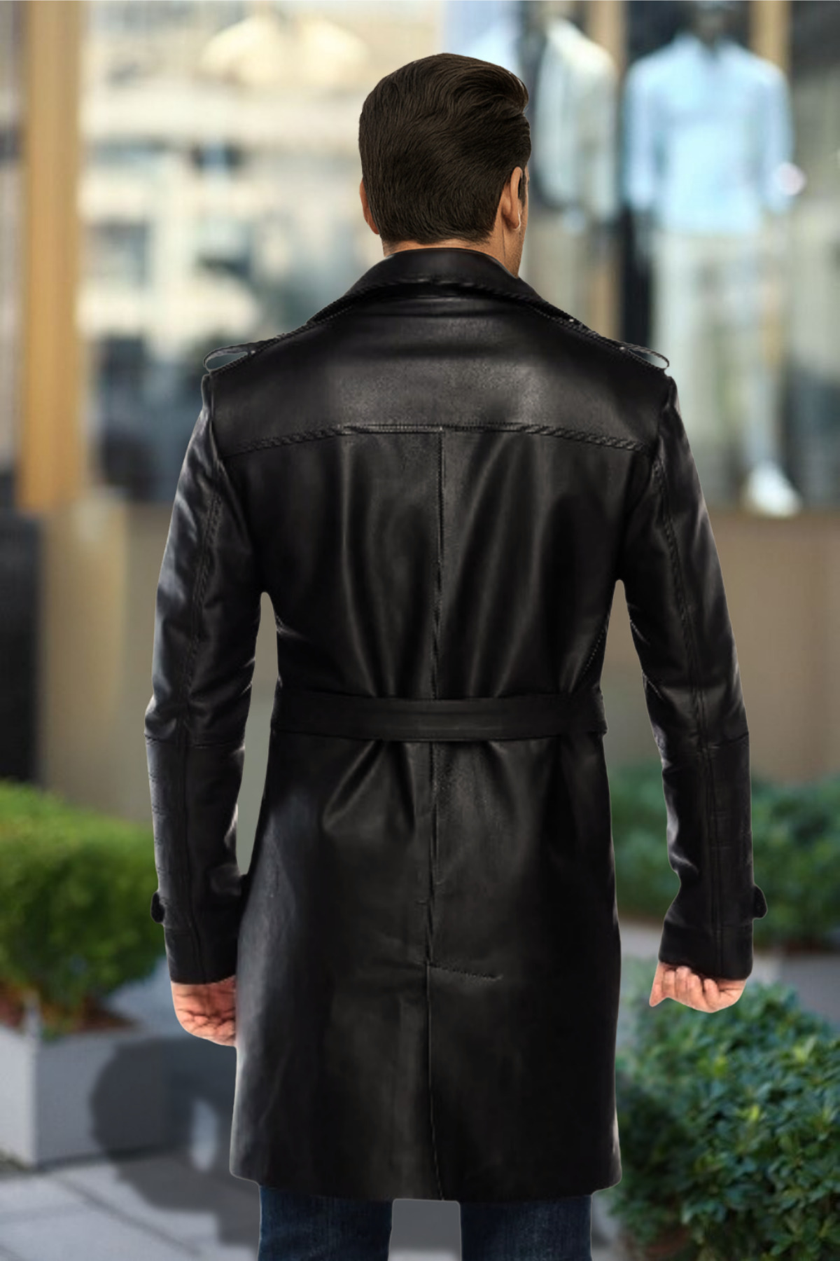 Matrix Hakiki Deri Erkek Siyah Kuşaklı Pardesü