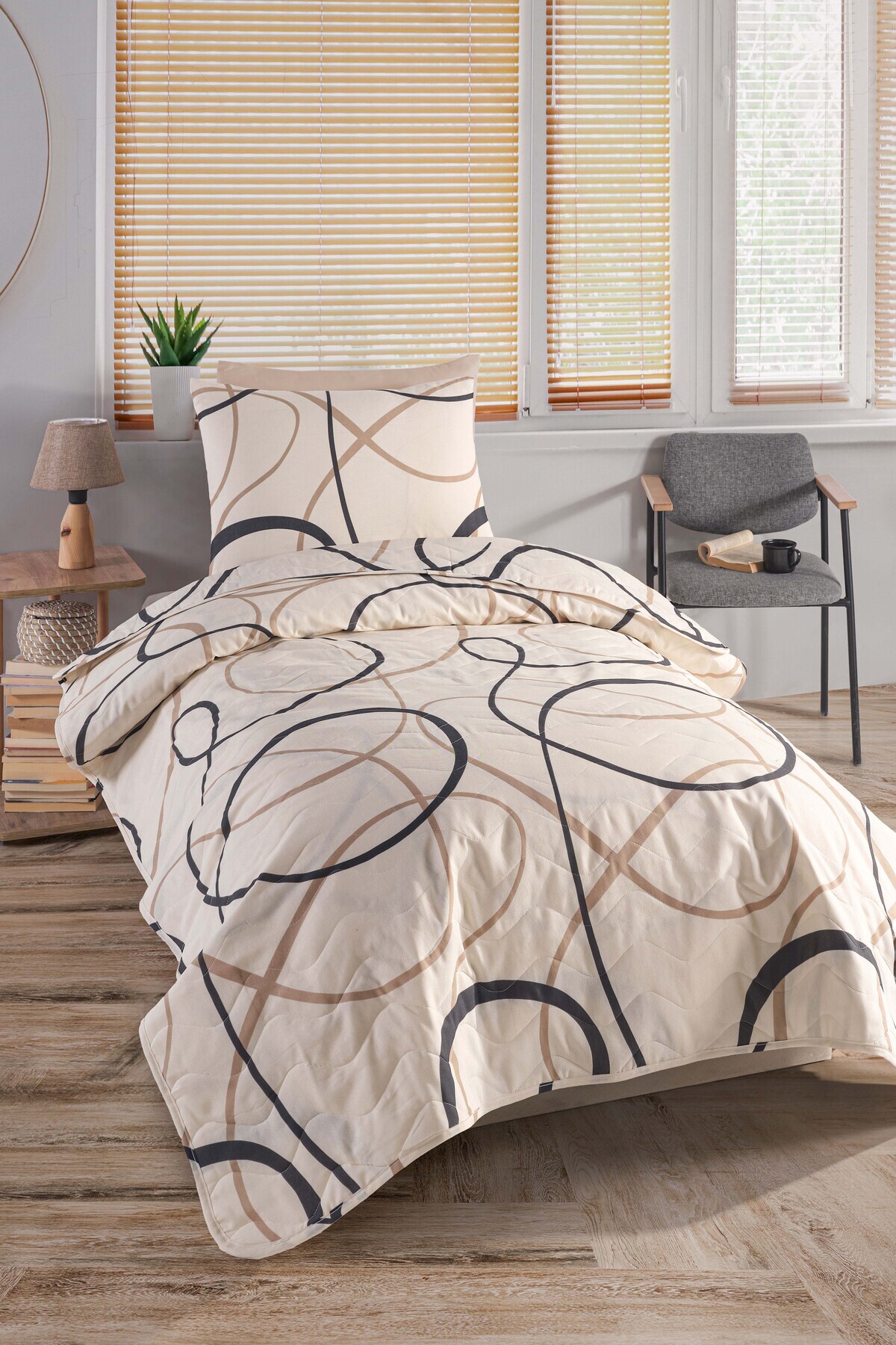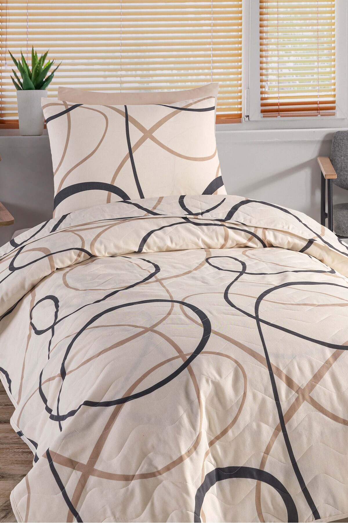 Özenle işlenmiş yatak örtüsüne özel bir dokunuş sağlamaktadır