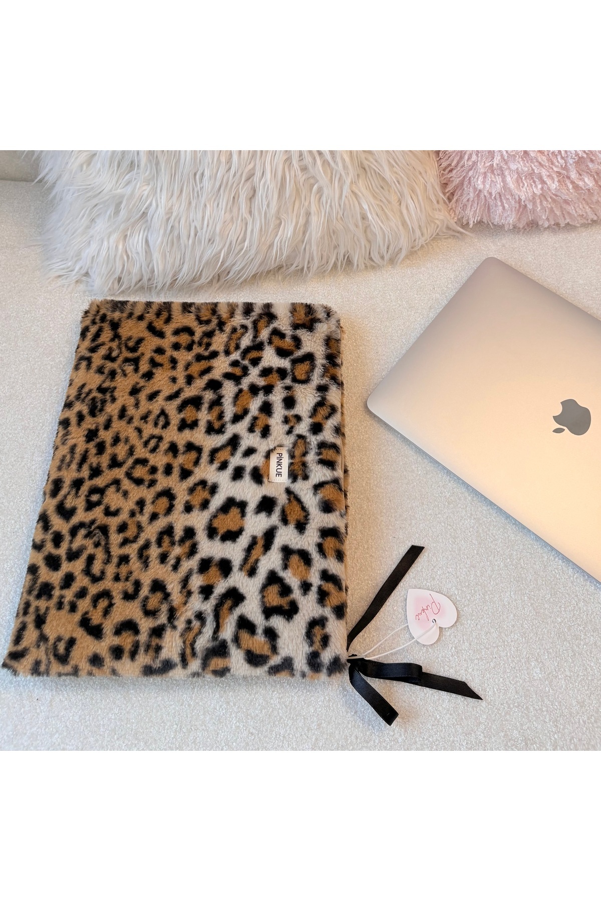 🐆✨⸻🌸 Özellikler•Ölçü: 28 x 23 cm•11 inç tablet, iPad ve küçük laptoplarla uyumludur•Yumuşak peluş kumaş (leopar desenli)•Fermuarlı tasarım•Astar kaplamalı iç yüzey•El yapımıdır•Siyah saten kurdele & Pinkue etiket detayı⸻🎁 Kullanım AlanıGünlük kullanım, seyahat veya hediye için mükemmel bir seçimdir.