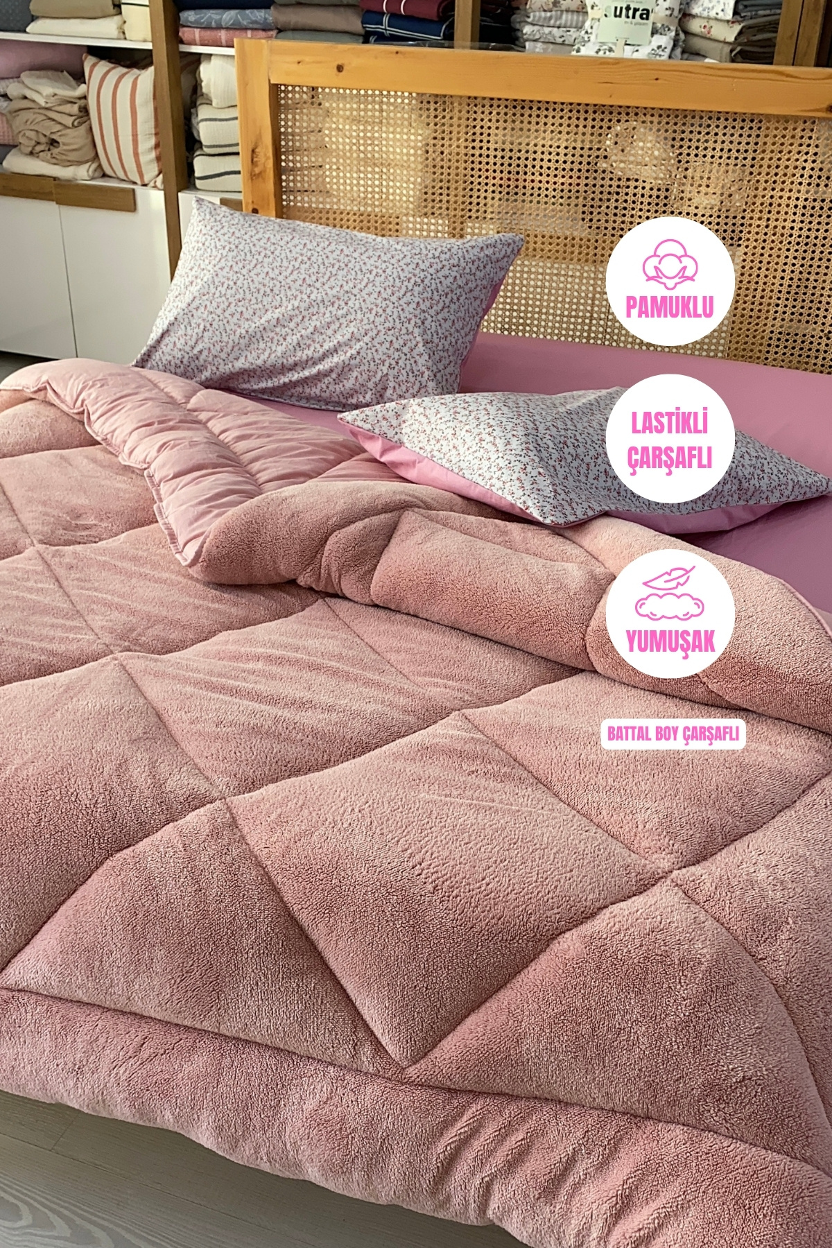 Pamuklu Wellsoft Kalın Çift Kişilik Battal Boy Lastikli Çarşaflı Uyku Seti