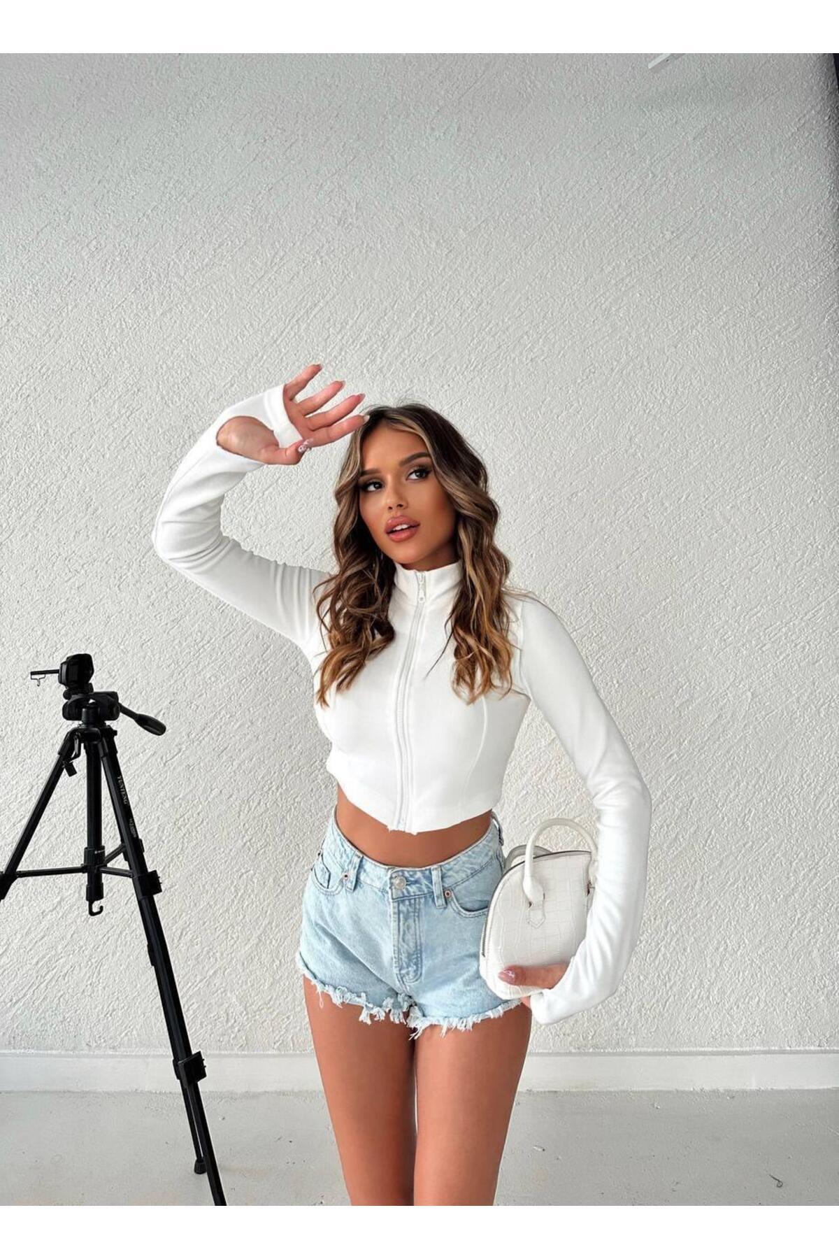 - Crop silueti ile trend bir görünüm kazandırırken, polo yaka detayı ile sofistike bir hava katar.