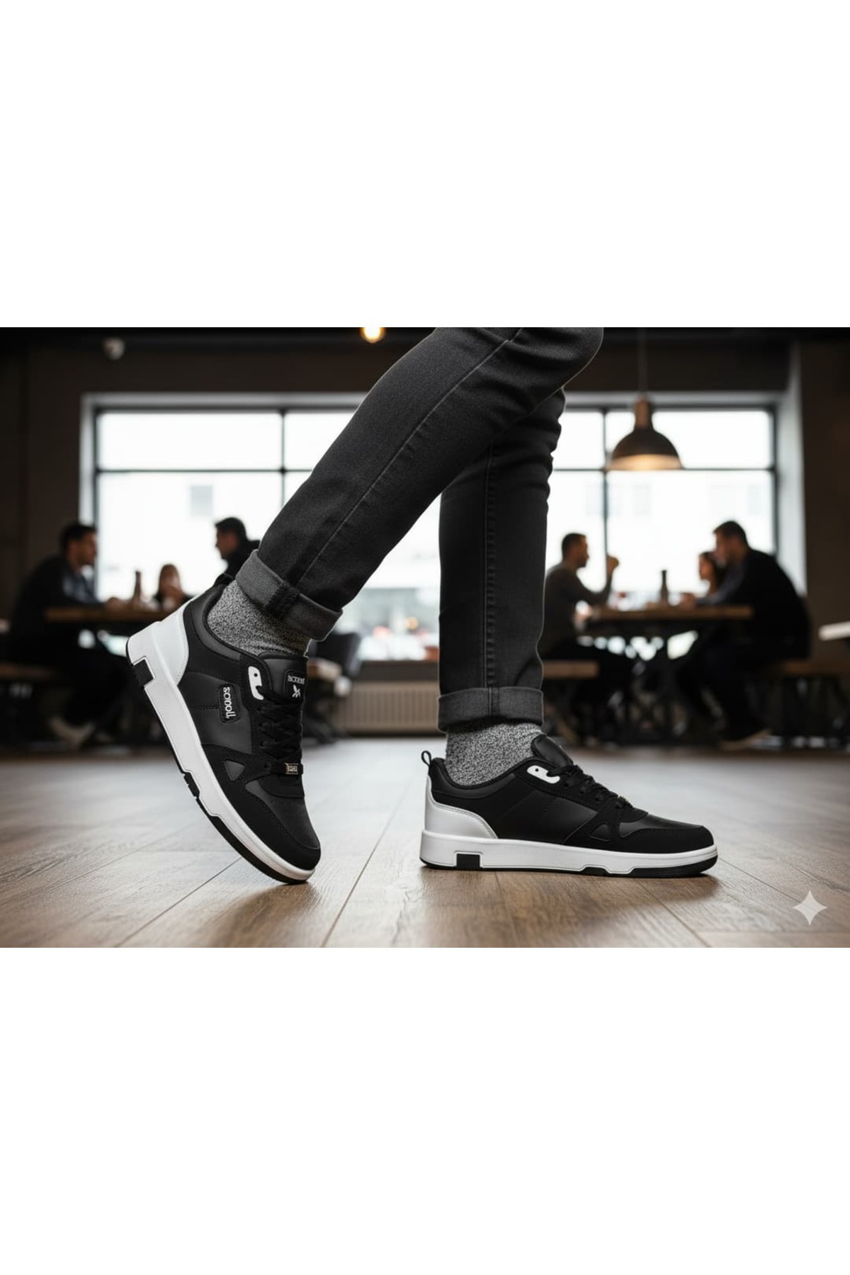 - Beyaz ve siyah renk kombinasyonu ile klasik casual tarzı günlük kullanım için ideal bir seçenektir.