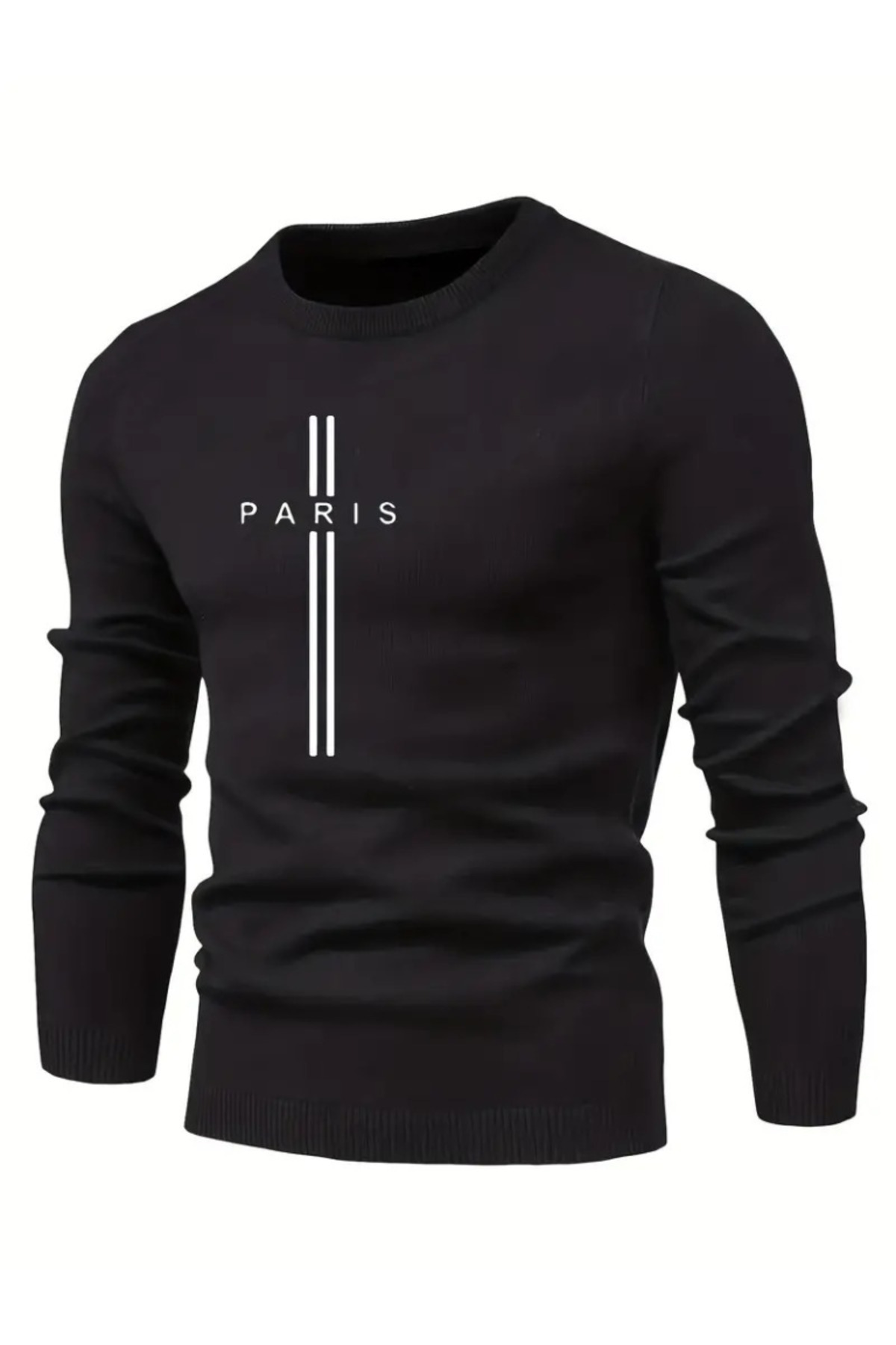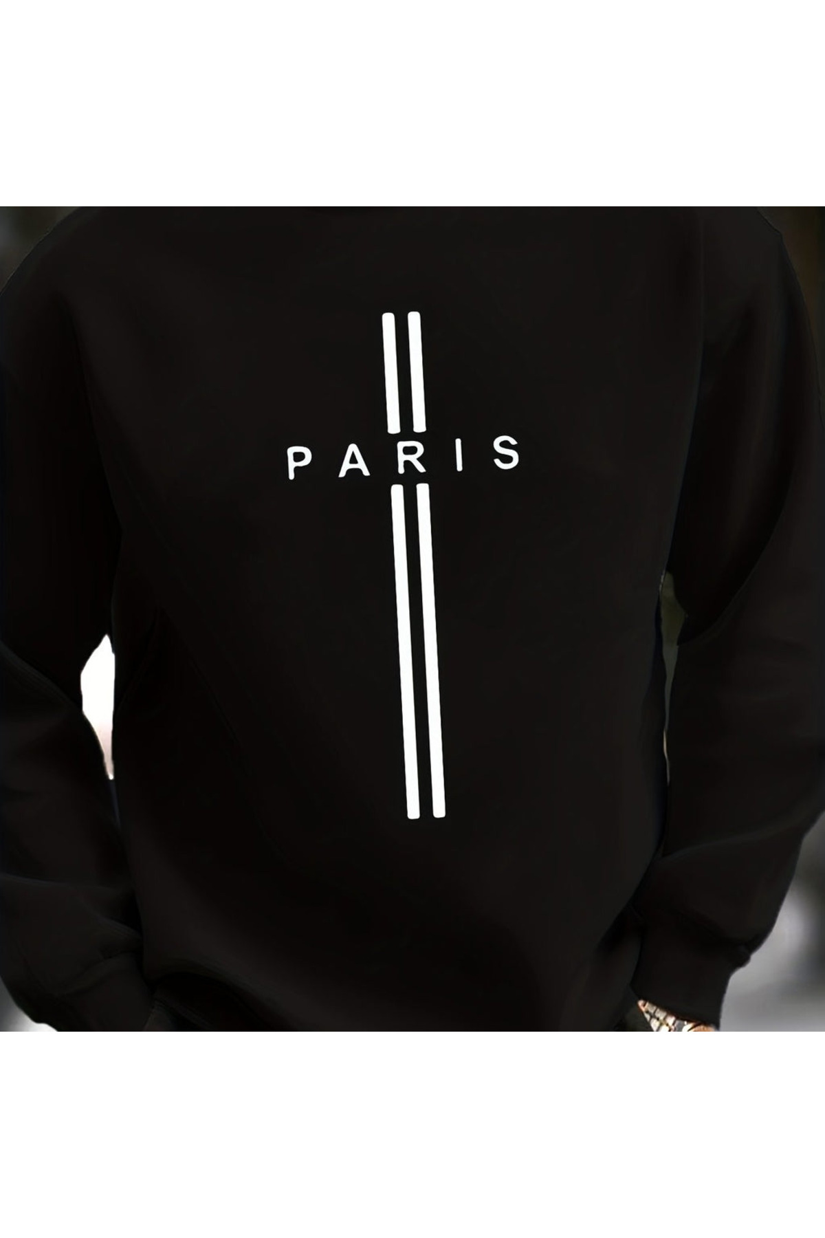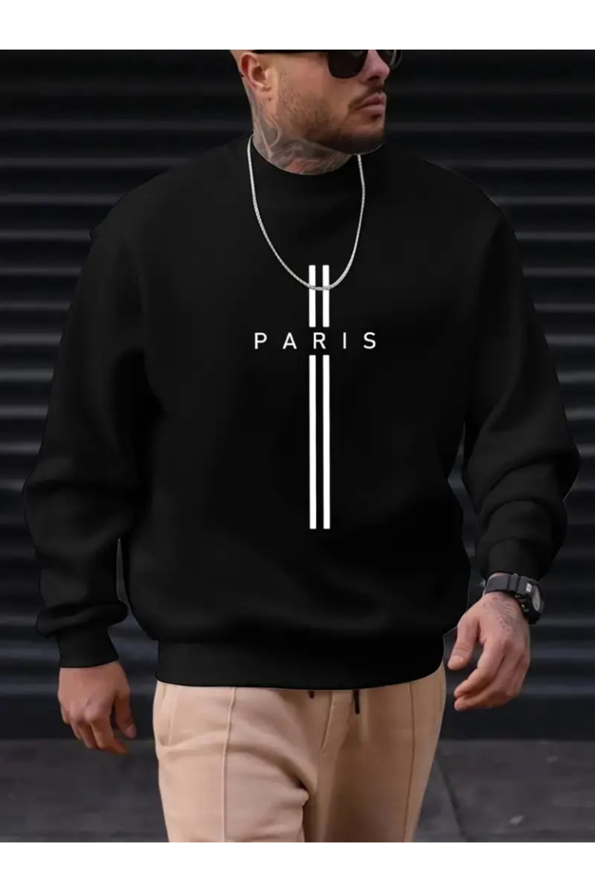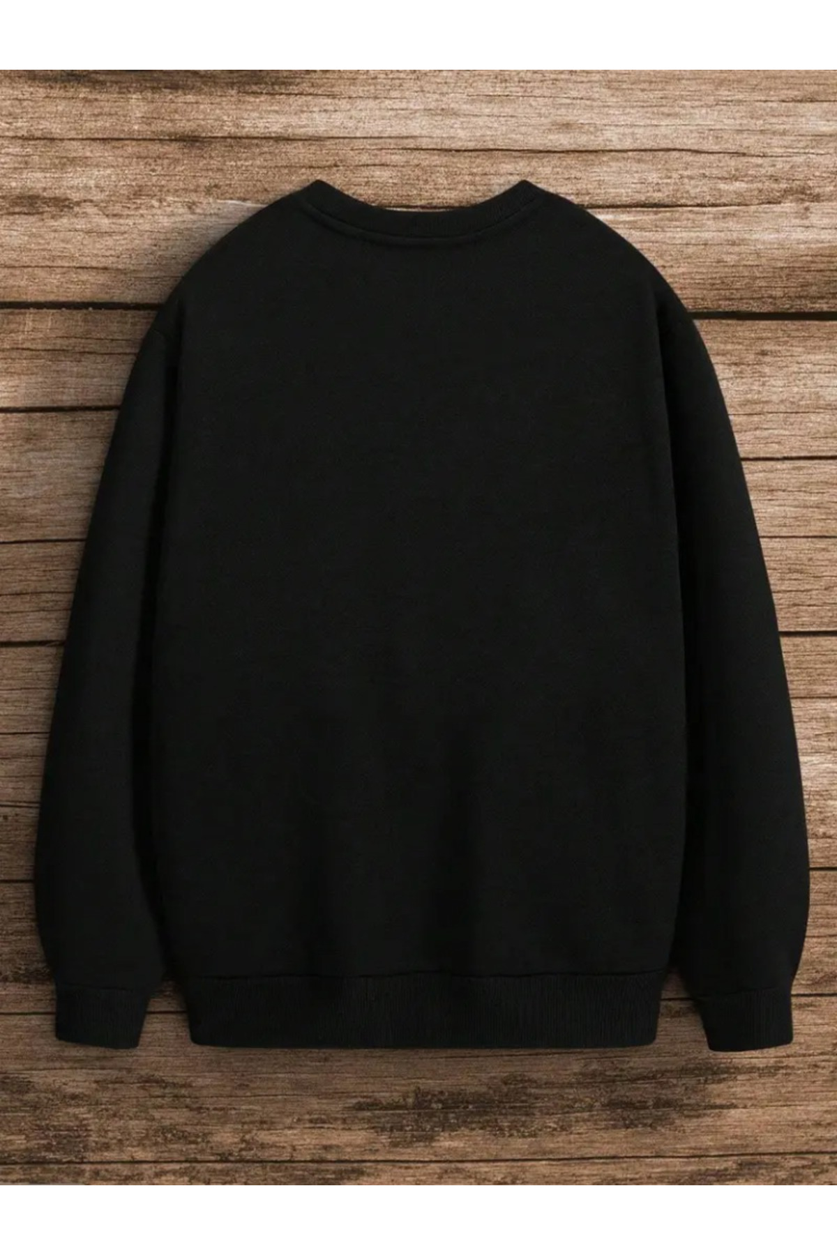 Erkek Uzun Kollu Bisiklet Yaka Yazı Detaylı Iki Iplik Bluz