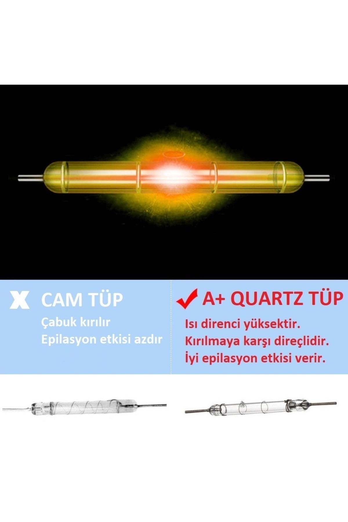 Üründe yüksek kaliteli Quartz ampul kullanılmıştır.