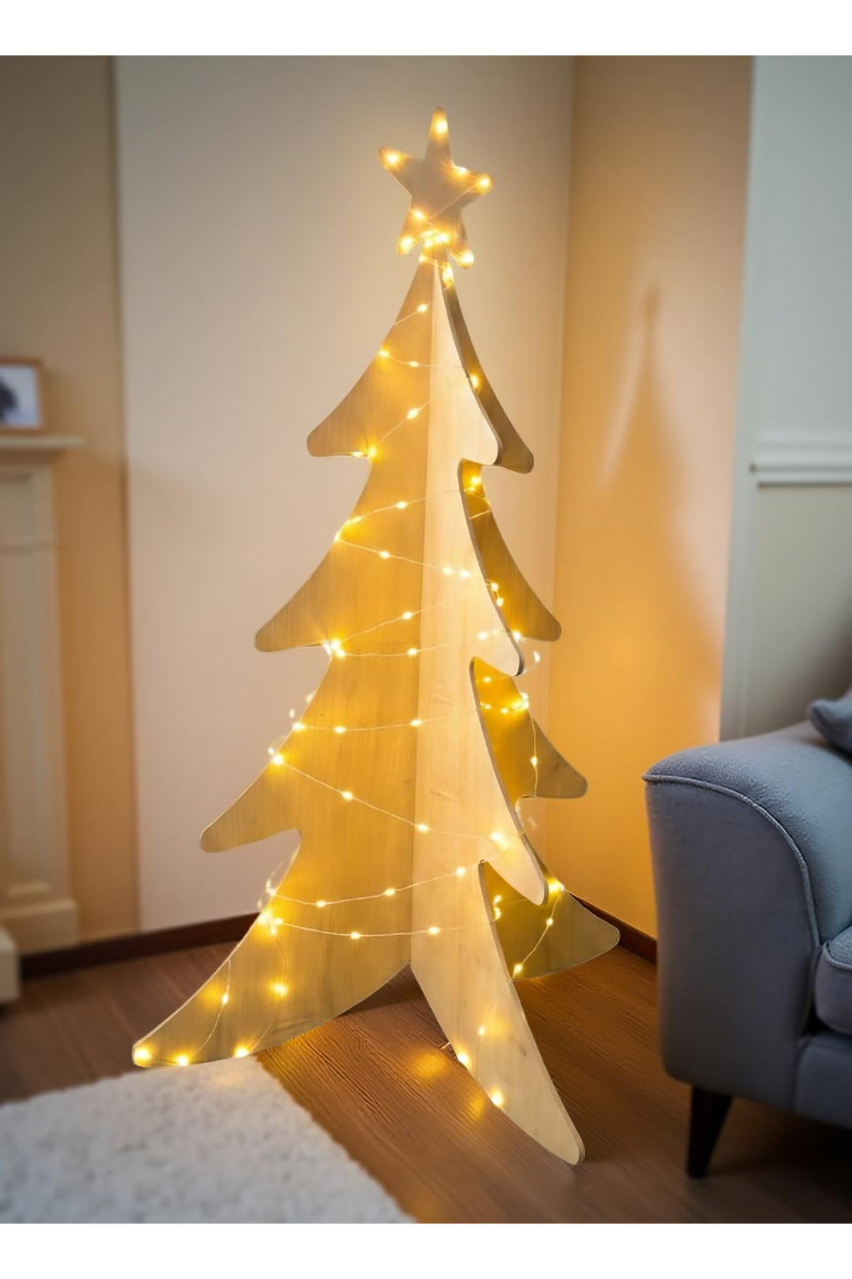 Dayanıklı MDF malzemeden üretilmiş modern tasarımlı dekoratif çam ağacı ve LED ışık birlikte gönderilmektedir.