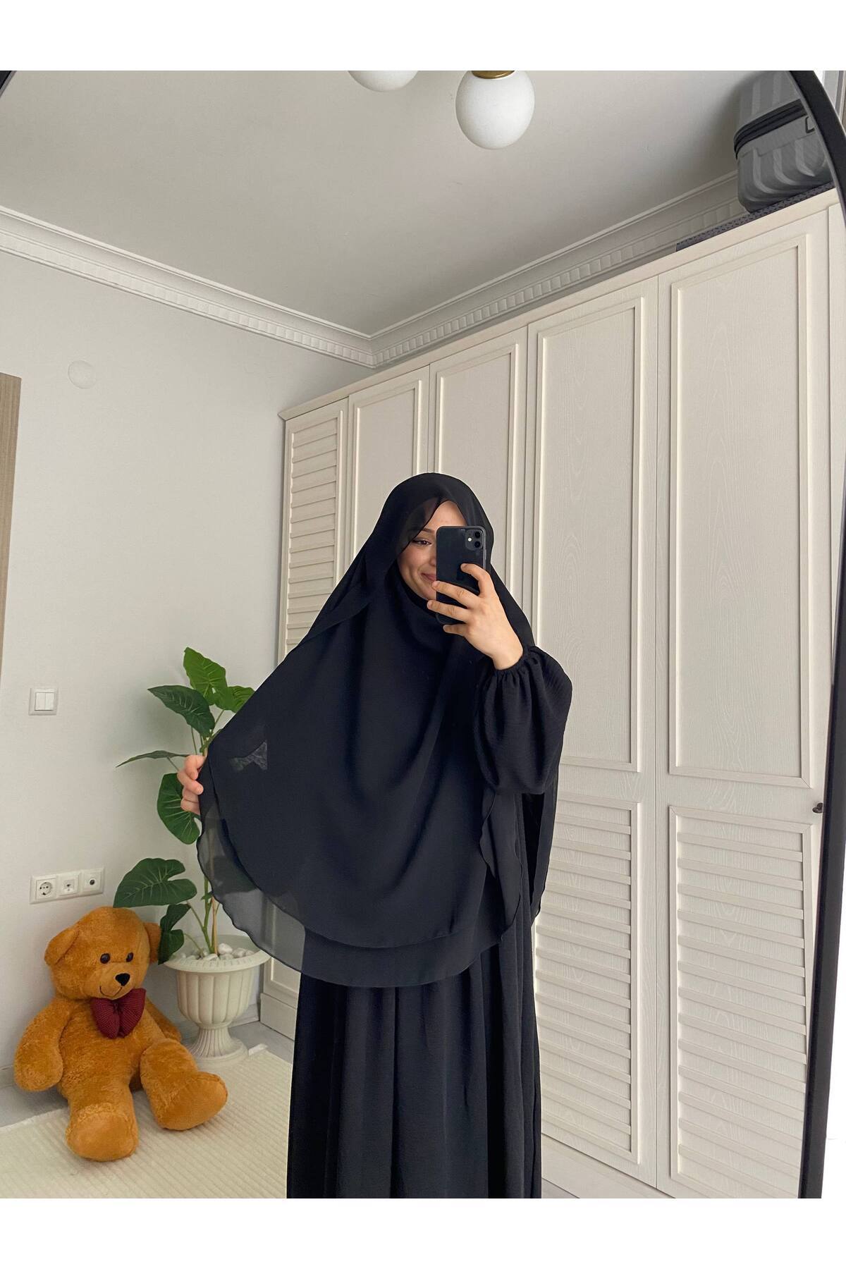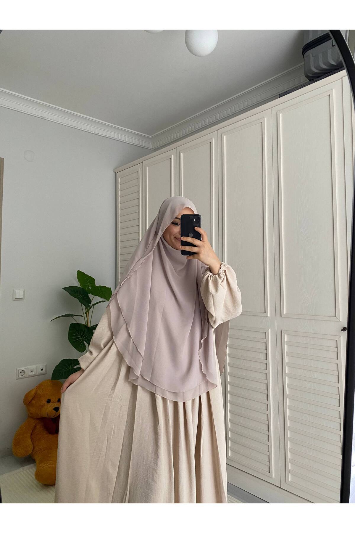 Tesettür Elbise Ürünü Kumaş 1. kalite ayrobin ithal kumaş Ütü gerektirmez 1.75 boyuna kadar uygundur 36/50 Beden Arası Standart Dökümlü ÜrünMultişifon 2 Katlı gölgeli Sufle Kumaş : multişifon Beden StandartArka 120Ön 70