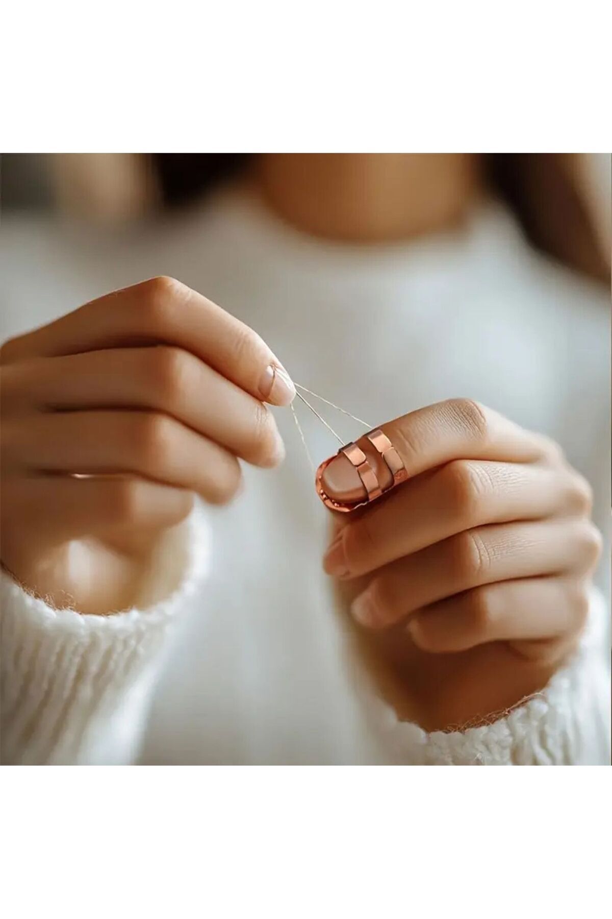 Gümüş Metal Dikiş Yüksüğü - Metal İğne Parmak Koruyucu - 2 Adet